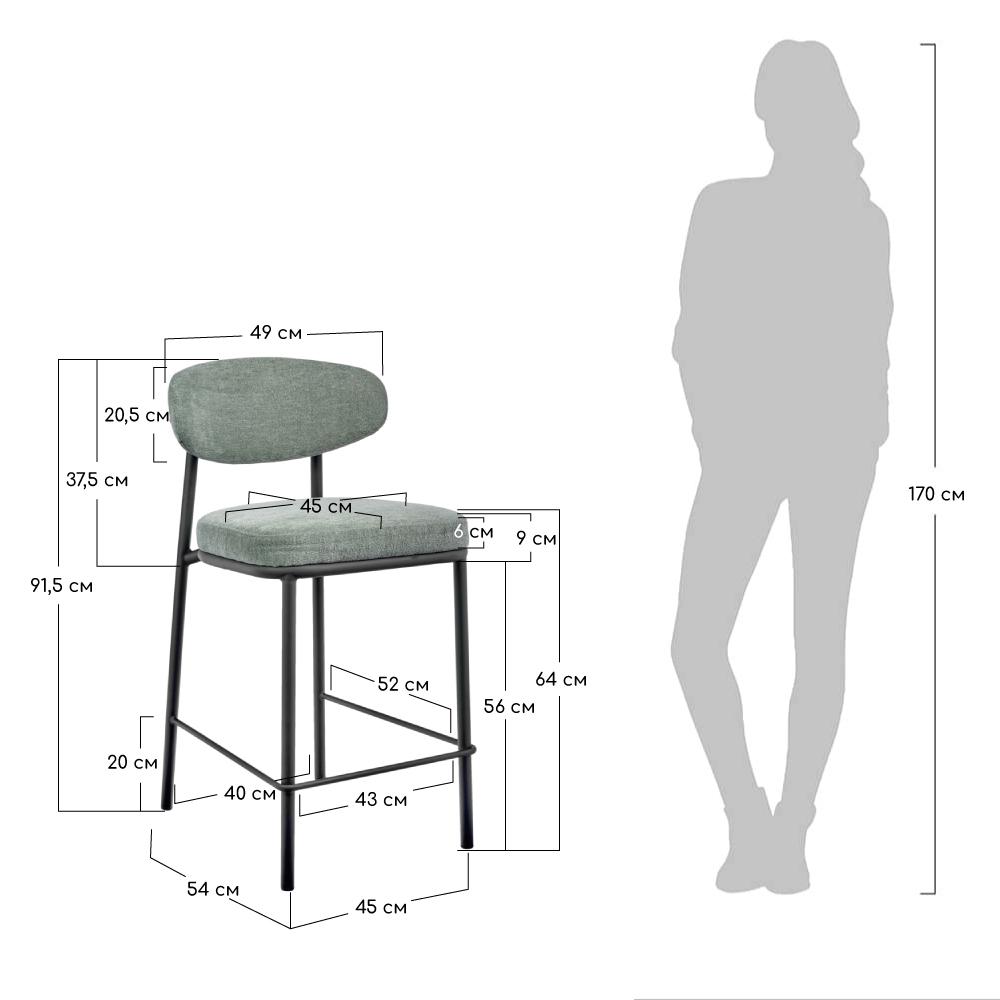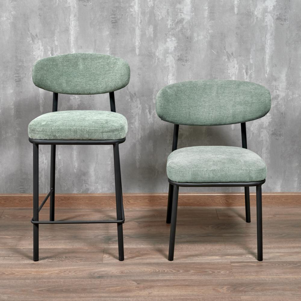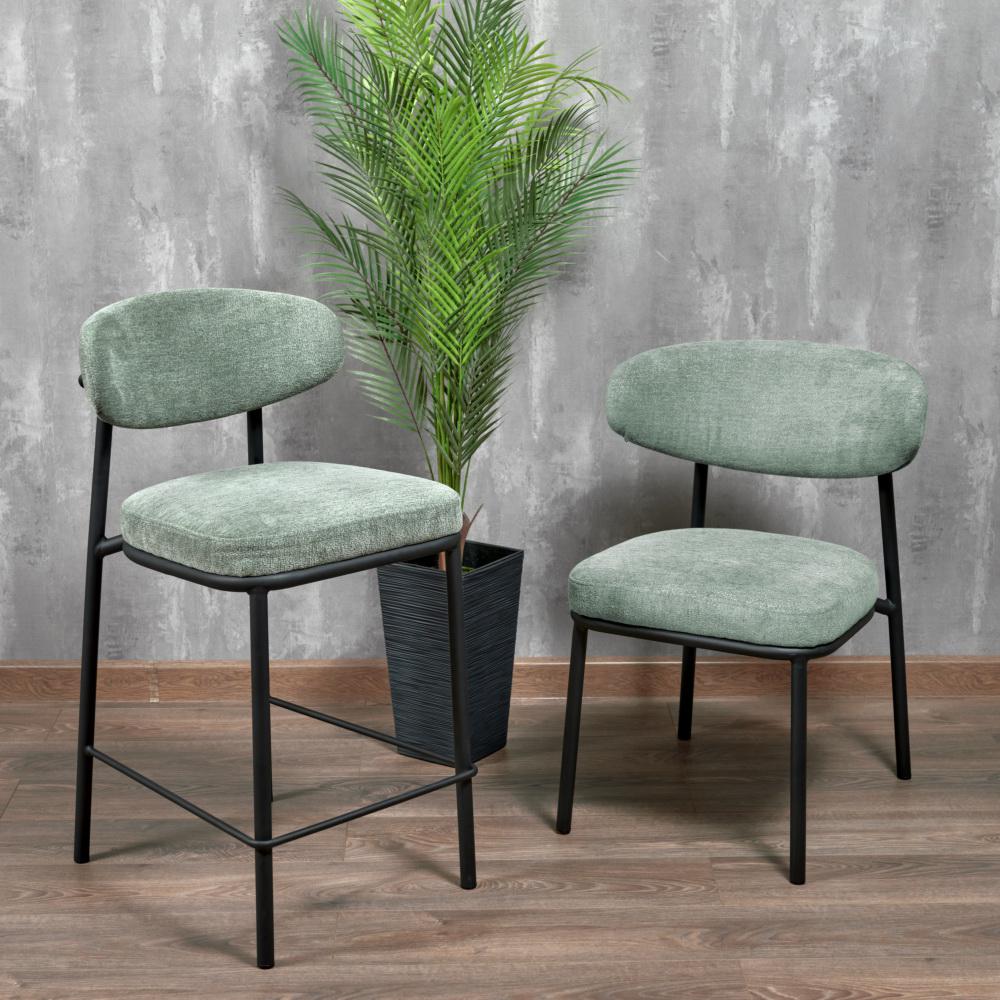 Стул Bradexhome Стул полубарный Lucas 2 шалфей шенилл с чёрными ножками арт. FR 1025