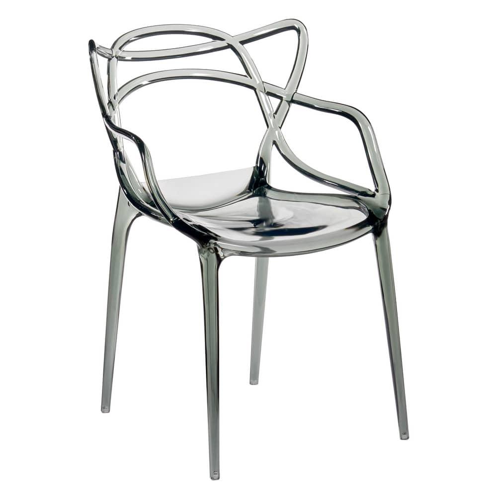 Стул Masters прозрачный серый - одно из самых удивительных и привлекательных решений дизайна пластиковых стульев. Уникальное сочетание тонких линий элементов спинки, подлокотников и ножек, предоставляет возможность универсального решения для жилых помещений, современных офисных пространств, баров, кафе, ресторанов и отелей. Варианты матовых отделок и металлизированного эффекта пластика расширяют возможность реализаций со стульями Masters в разных по стилю и дизайну помещениях