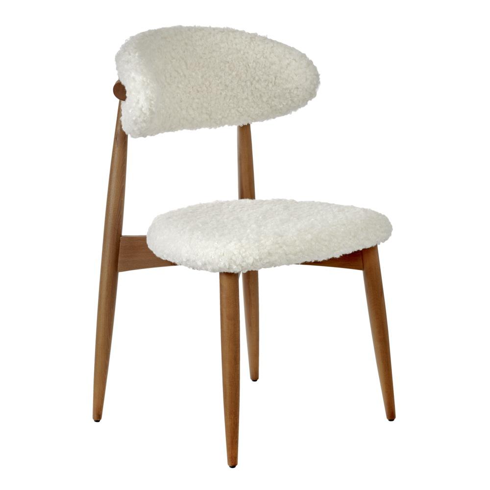 Сиденье и спинка изготовлены из искественного меха белого цвета. Мягкие спинка и сидение обеспечивают максимальный комфорт. Оригинальный каркас из массива натурального дерева в цвете орех добавляет стулу элегантность. Стулья из бука отличаются прочностью и надежностью.
