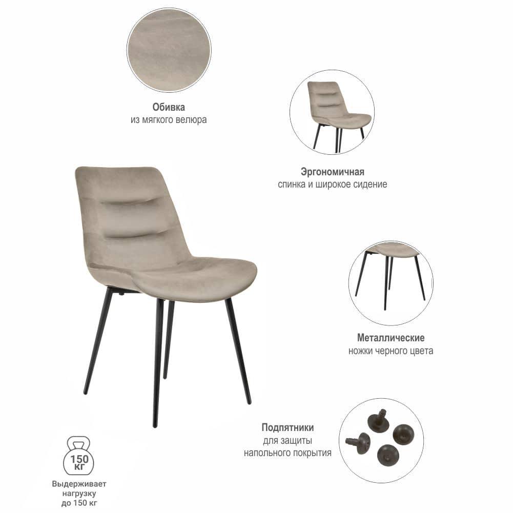 Стулья Chester на устойчивом металлическом каркасе с сиденьем эргономичной формы в нежной велюровой обивке придется по душе любителям комфорта и уюта.