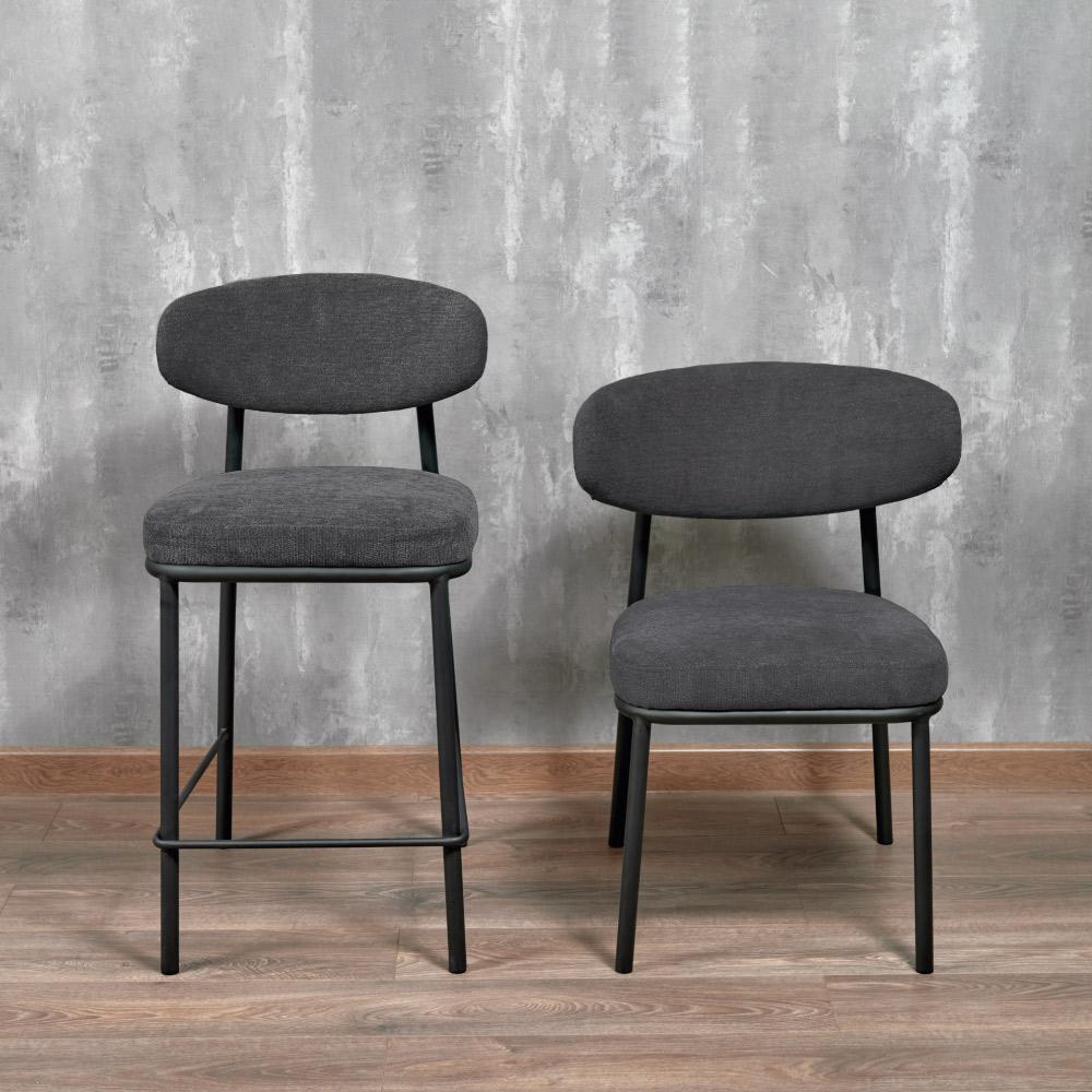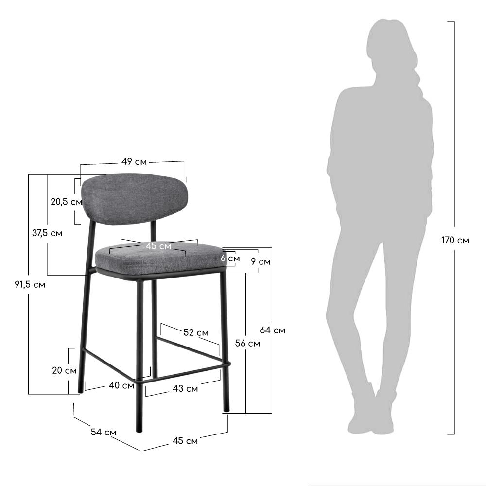 Стул Bradexhome Стул полубарный Lucas 2 серый шенилл с чёрными ножками арт. FR 1023