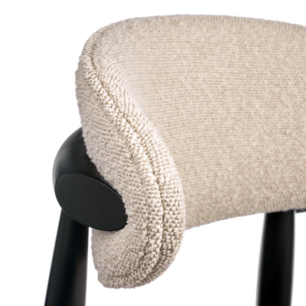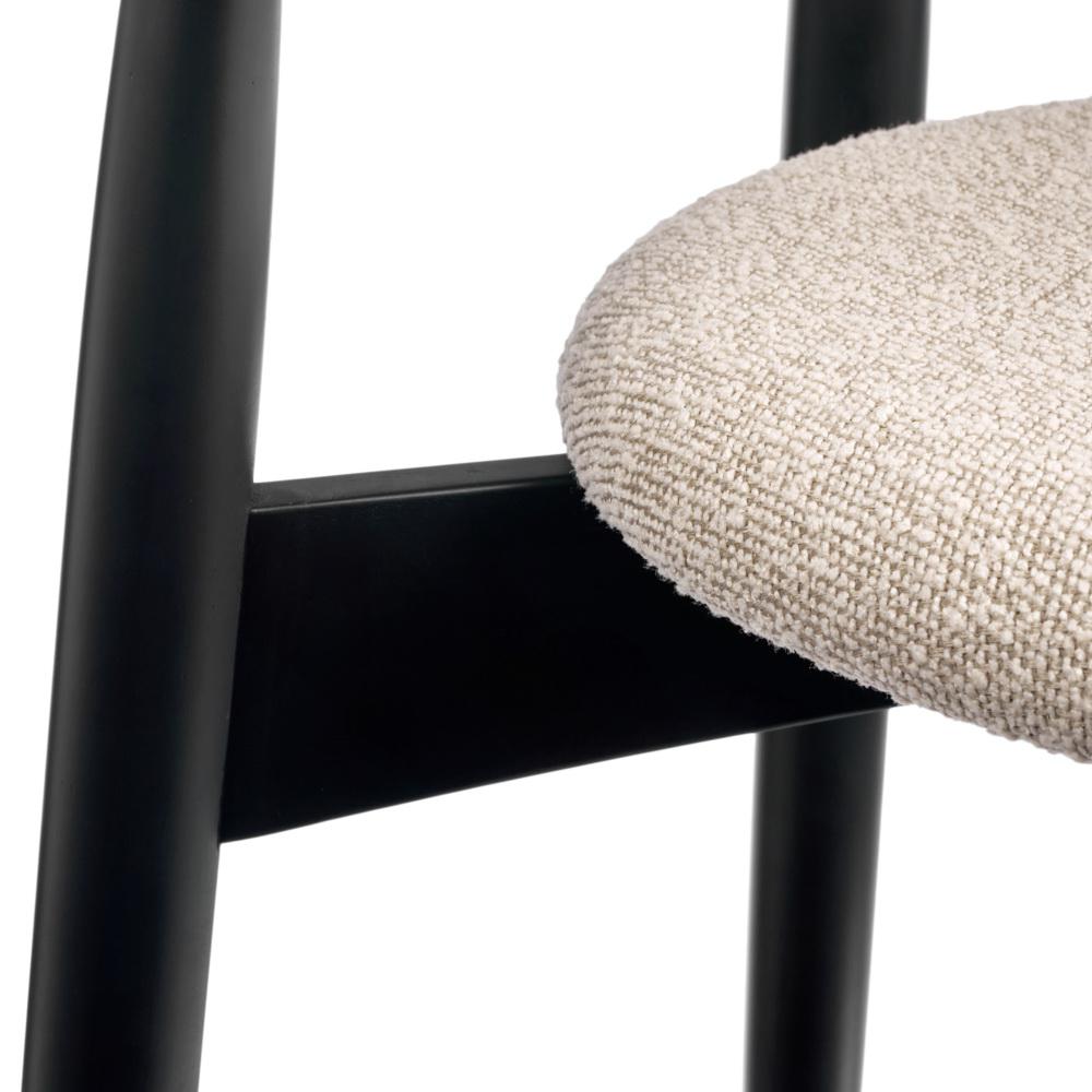 Сиденье и спинка изготовлены из высокоустойчивой ткани букле в светло-сером оттенке. Мягкие спинка и сидение обеспечивают максимальный комфорт. Оригинальный каркас из массива натурального дерева в черном цвете добавляет стулу элегантность. Мелкая структура дерева образует удивительно гладкую поверхность, придающую стулу особый шарм.