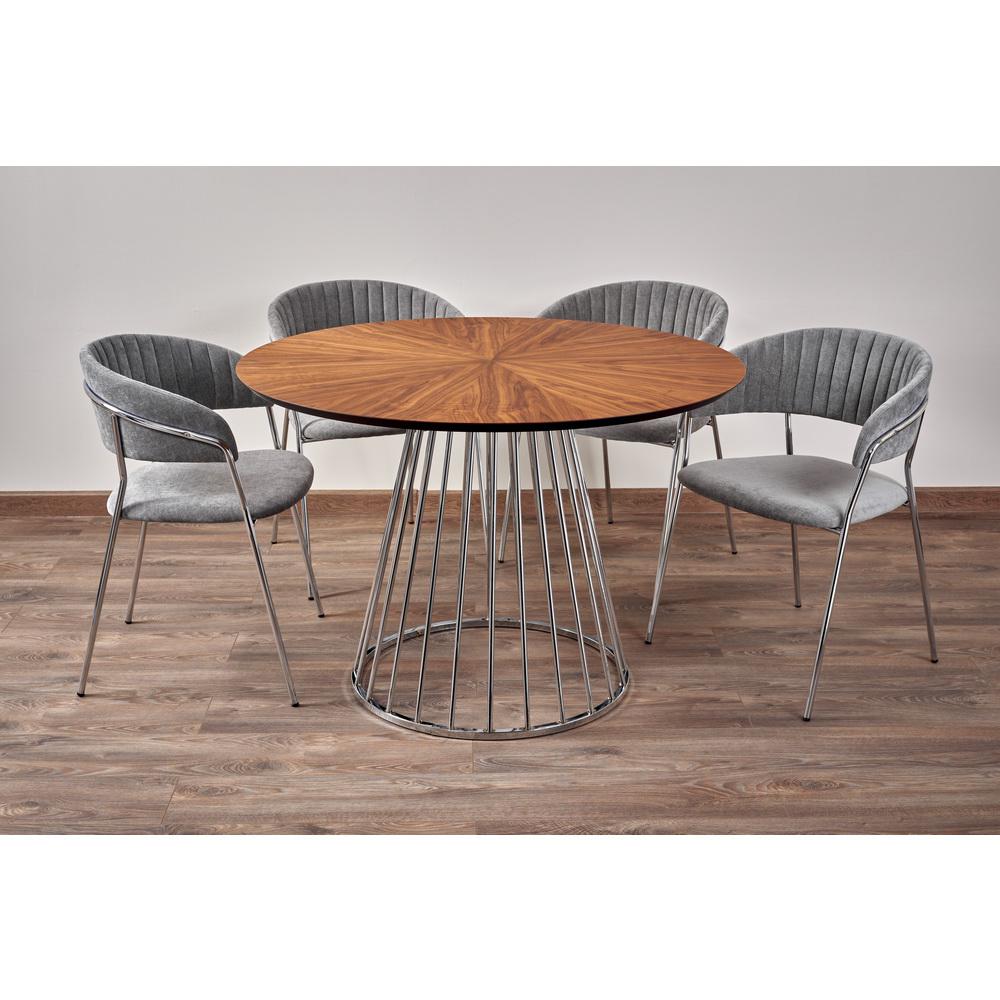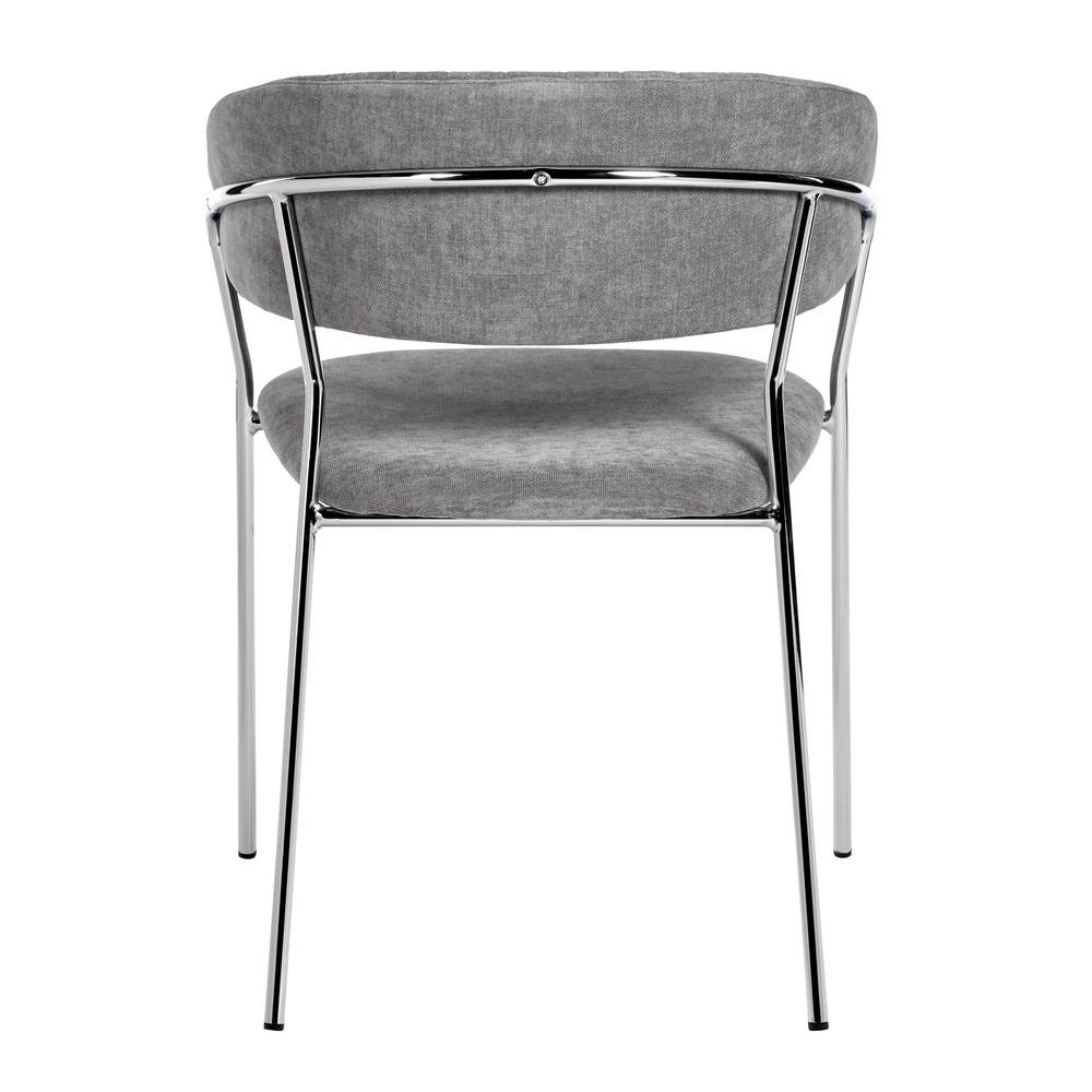 Обивка из качественного серого вельвета не только приятна на ощупь, но и отличается высокой износостойкостью. Она добавляет обстановке уют и текстуру. Прочные хромированные ножки из металла обеспечивают надежную опору и придают конструкции легкость и визуальную воздушность.