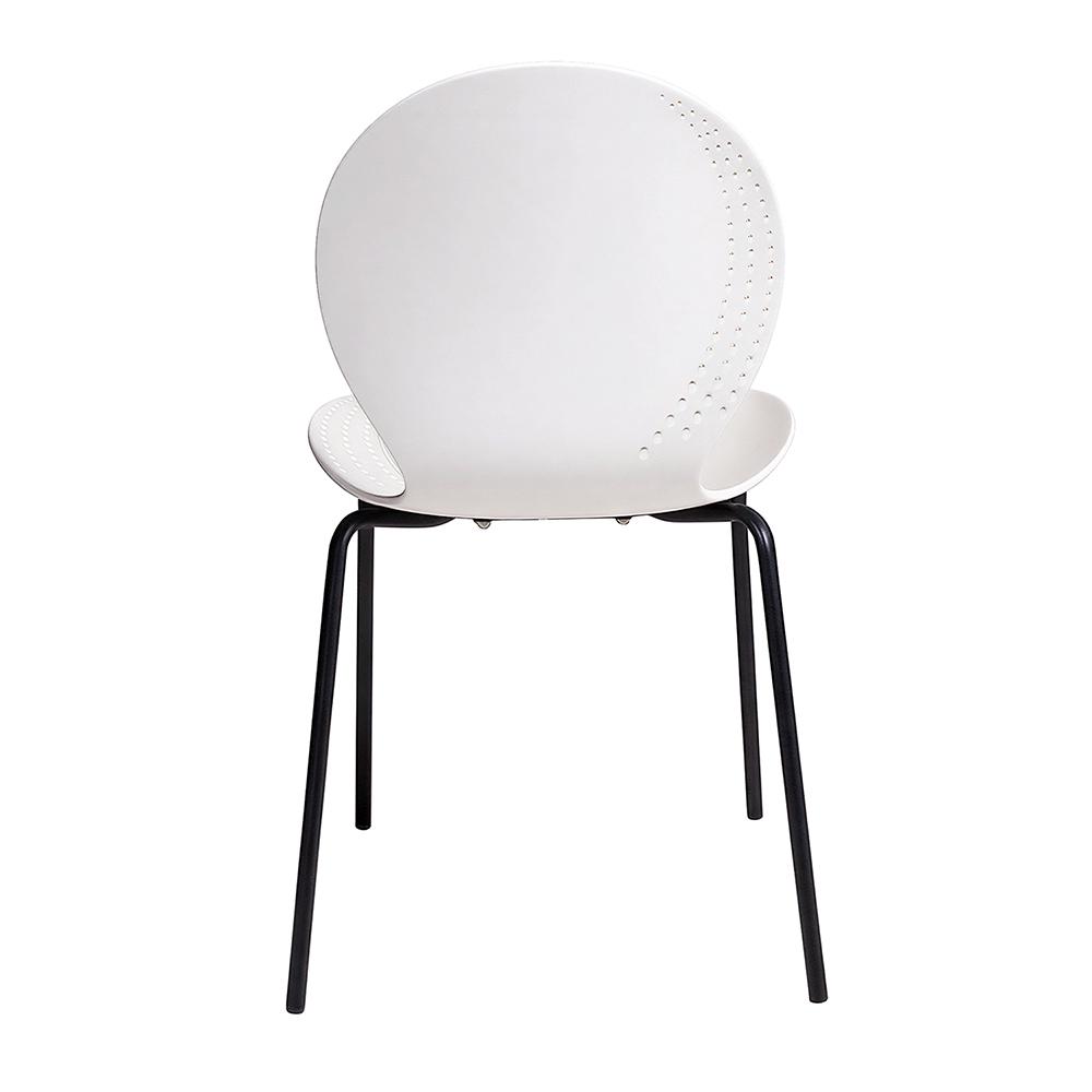 Цельнолитое пластиковое сиденье с плавными формами, создаёт комфортное пространство для посадки. Особенностью изделия является изящная перфорация по краям спинки и сиденья, придающая легкости общему облику и привлекающая внимание своей необычной декоративностью. Этот стул станет прекрасным дополнением интерьера, сочетающего минимализм и современность, гармонично вписываясь в любую обстановку и подчеркивая вкус владельца.