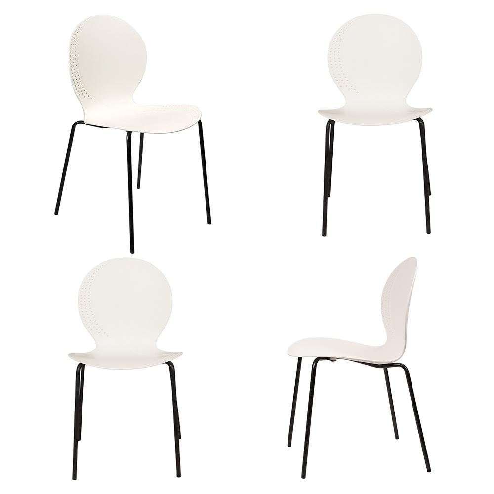 Цельнолитое пластиковое сиденье с плавными формами, создаёт комфортное пространство для посадки. Особенностью изделия является изящная перфорация по краям спинки и сиденья, придающая легкости общему облику и привлекающая внимание своей необычной декоративностью. Этот стул станет прекрасным дополнением интерьера, сочетающего минимализм и современность, гармонично вписываясь в любую обстановку и подчеркивая вкус владельца.
