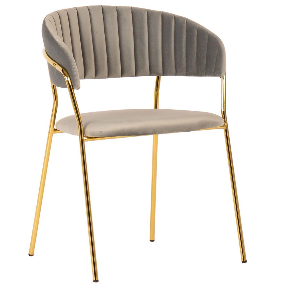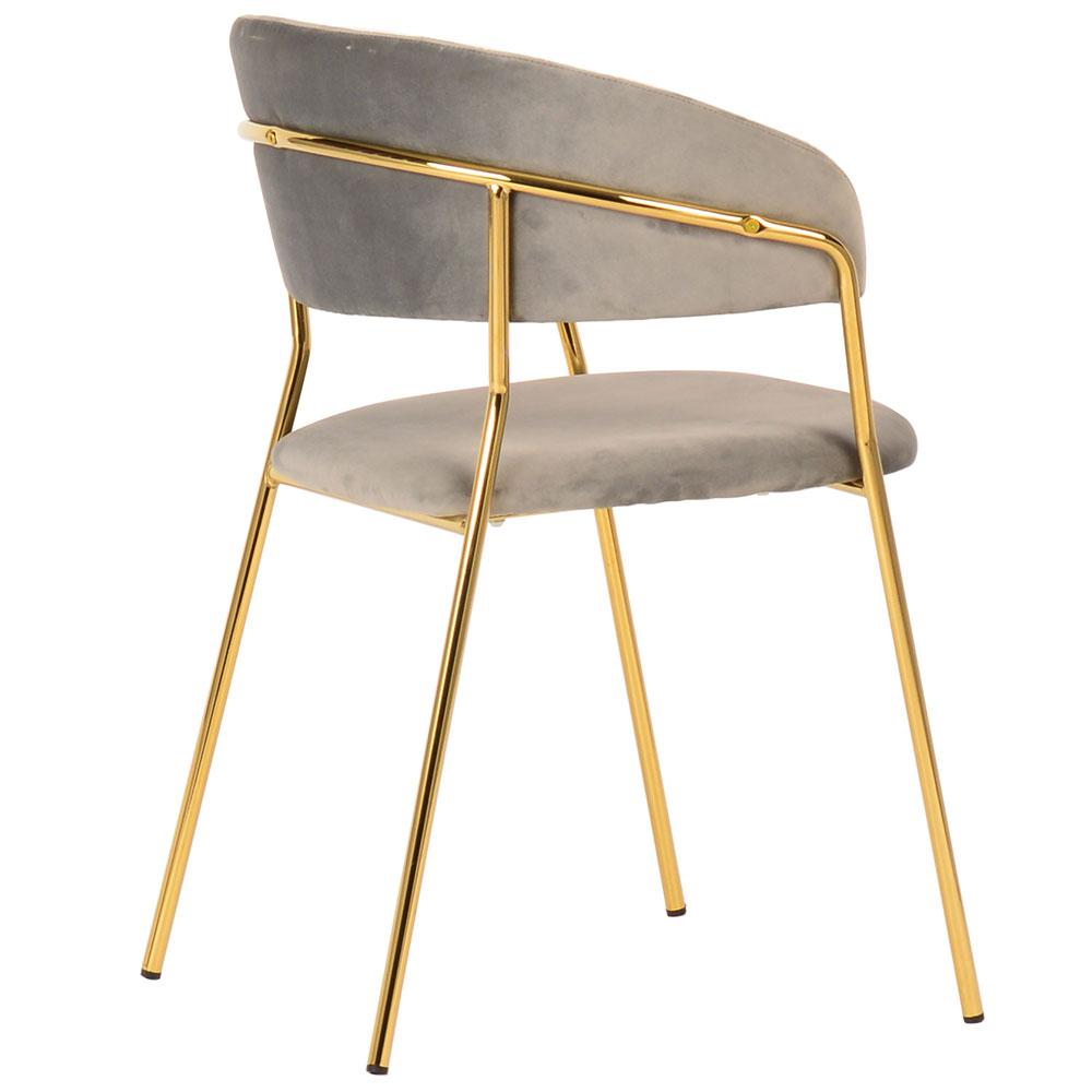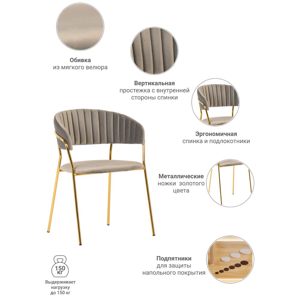 Мягкое велюровое сиденье дарит приятные тактильные ощущения и обеспечивает удобство во время длительных посиделок. Золотые металлические ножки добавляют мебели визуальной легкости и шика, подчеркивая безупречный вкус владельцев.