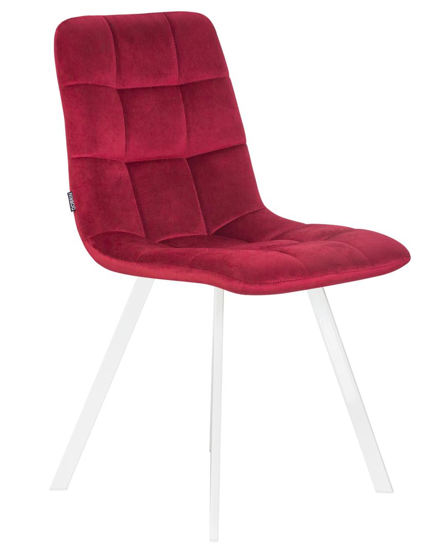 Наименование товара с характеристикой - Стул обеденный DOBRIN ALEX SQUARE, белые ножки, бордовый велюр (V108-85)