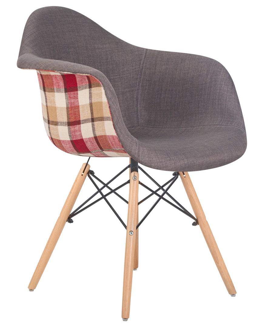 Наименование товара с характеристикой - Стул обеденный DOBRIN DAW THOMAS, ножки светлый бук, сиденье 010 яркая клетка, серая ткань