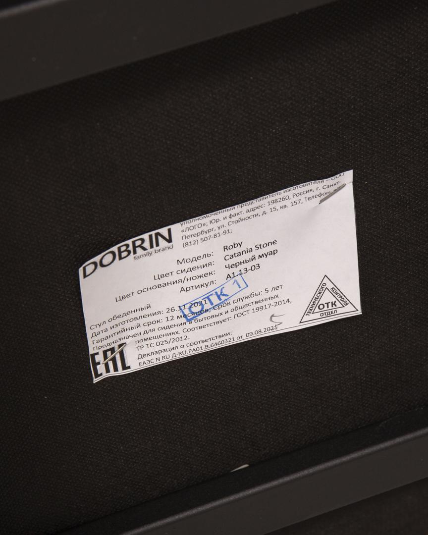 Стул DOBRIN Стул обеденный DOBRIN ROBY, ЭМАЛЬ ЧЕРНЫЙ МУАР велюр Catania Stone арт. A1.13-03_B-M_TT-Catania-Stone