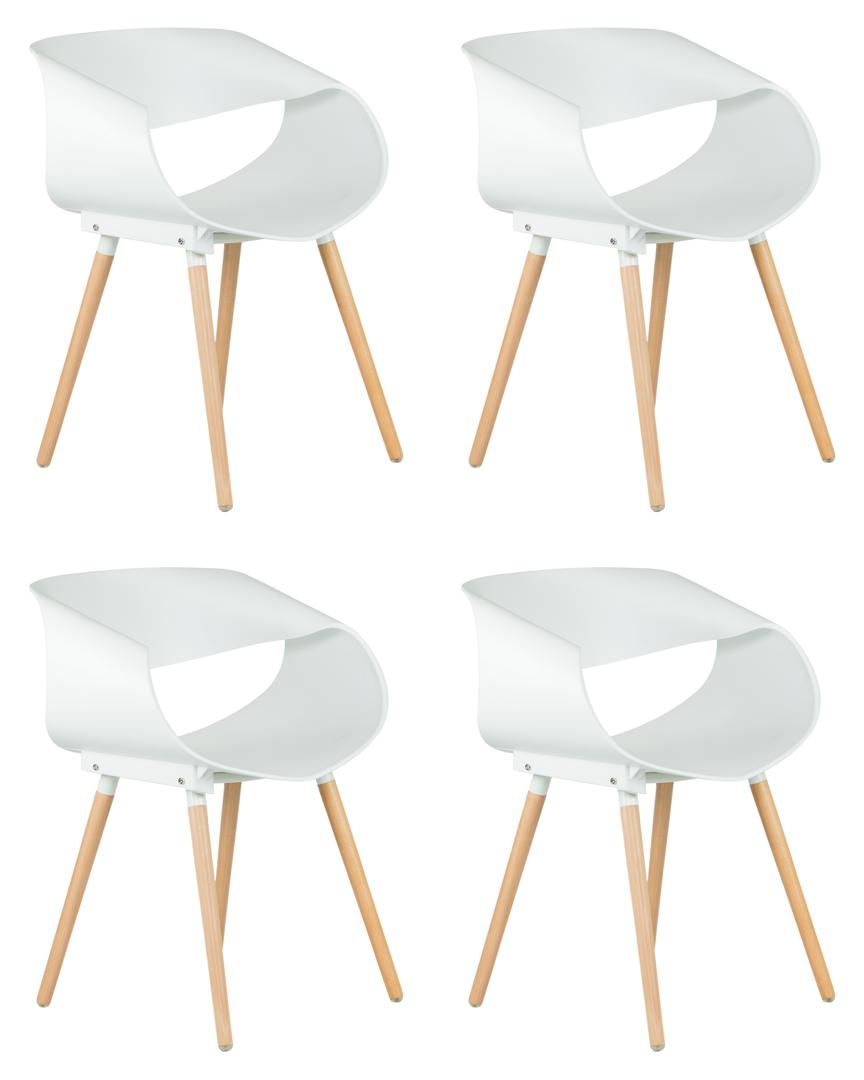 Стул DOBRIN Набор 4 шт Стул обеденный DOBRIN ALIEN, ножки светлый бук, цвет белый (W-02) арт. LMZL-PP682-N_LB-TR_P-W-02
