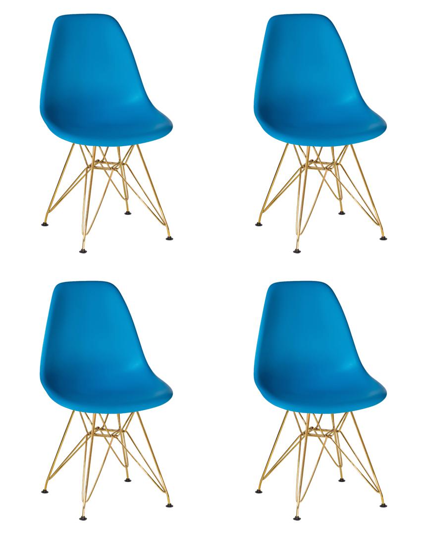 Стул DOBRIN Набор 4 шт Стул обеденный DOBRIN DSR, ножки золотые, цвет голубой (BE-02) арт. LMZL-PP638A-N_G-M_P-BE-02