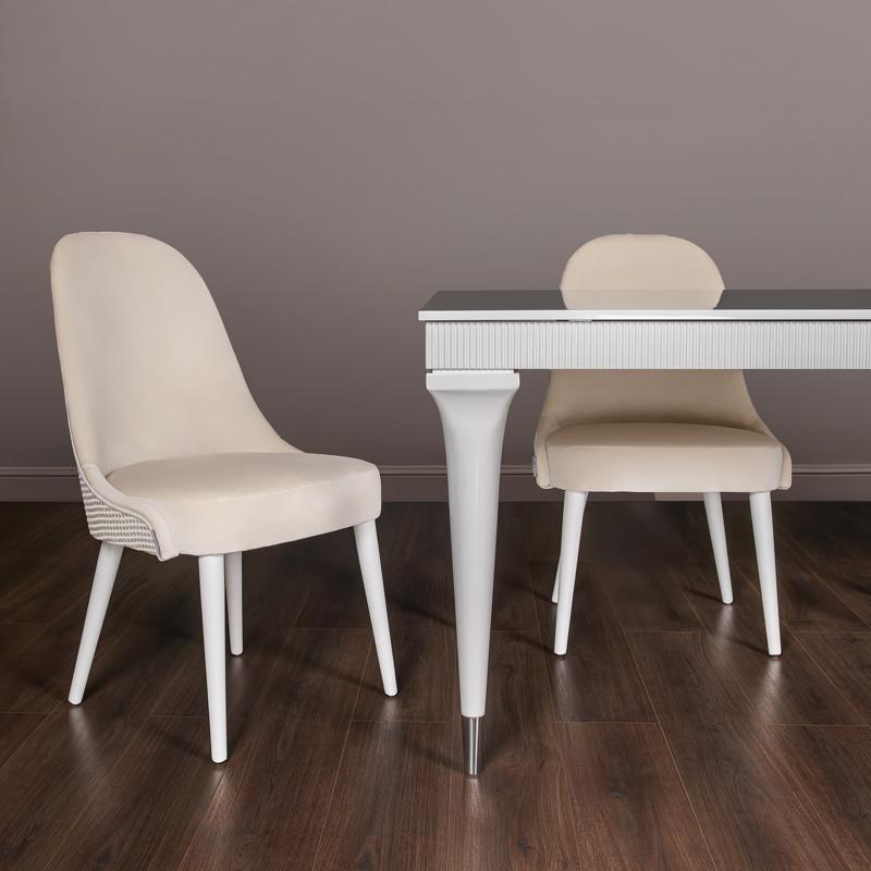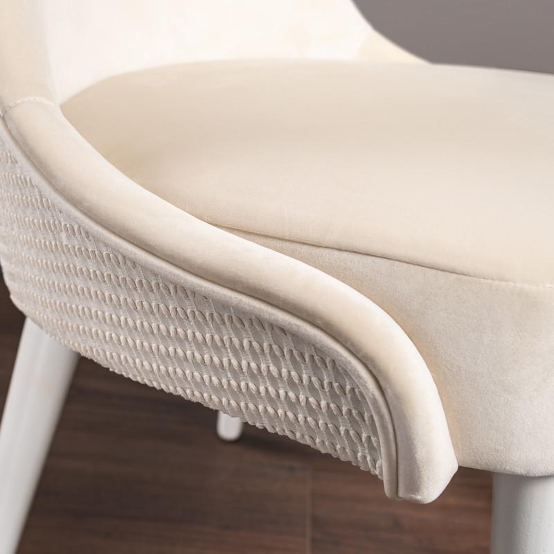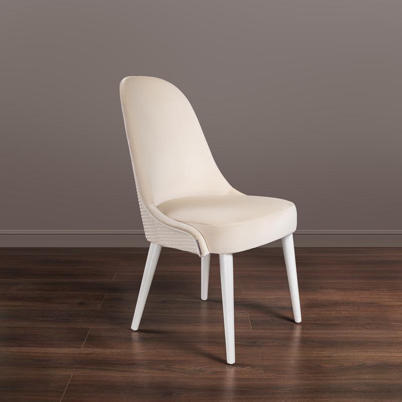 Стул от фабрики Fratelli Barri выполнен в современном стиле. Ножки выполнены из массива бука в отделке белый глянцевый лак. Материал обивки: ткань сидения и внутренней спинки Paddington 27, ткань внешней спинки Rich 14. Наполнение: ППУ повышенной износостойкости.