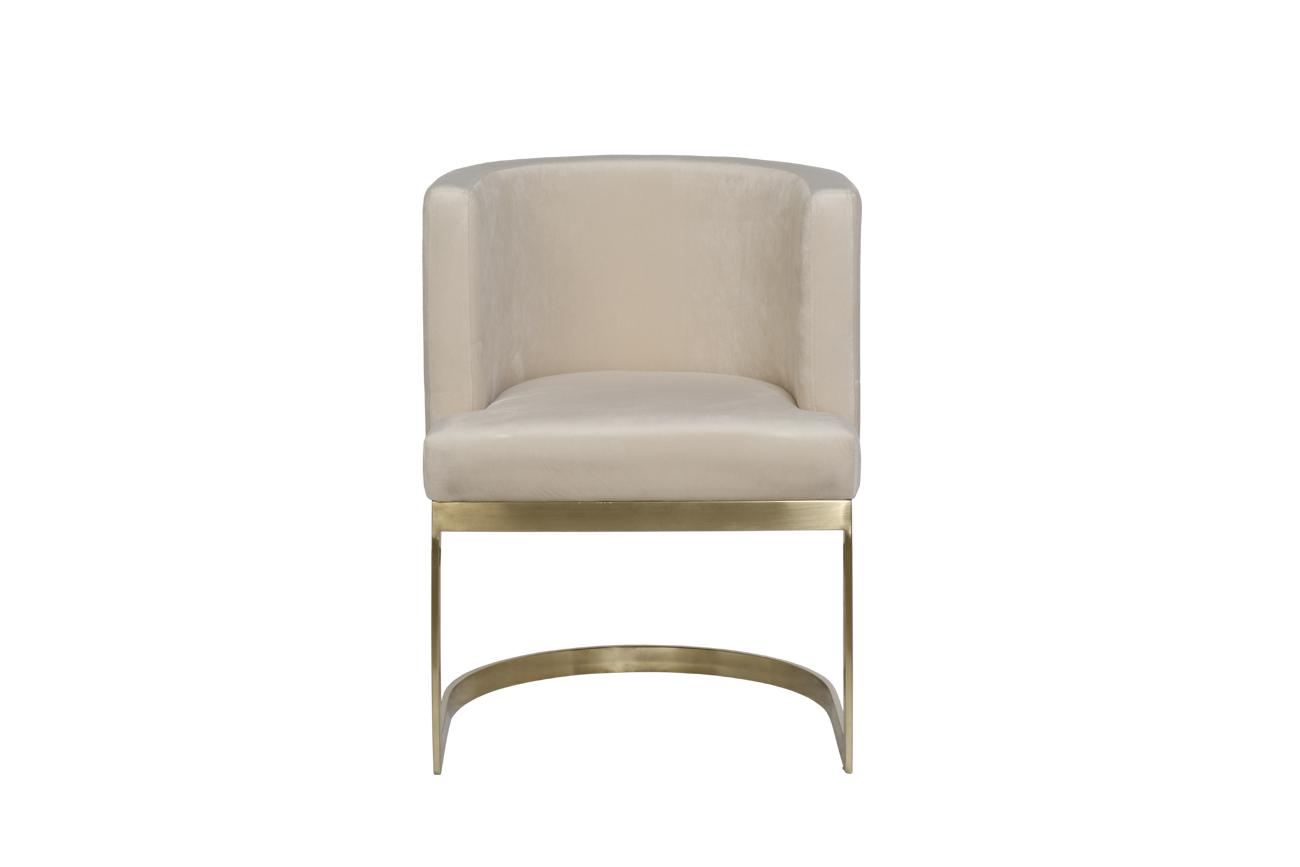 description-full - Дизайнерский светло-бежевый стул с обивкой из мягкого велюра сочетает в себе простоту форм и практичность материалов. Вместо обычных ножек дизайнеры сделали устойчивую оригинальную опору из металла, что добавило конструкции изящества и легкости. Красивый лаконичный стул с каркасом цвета золото прекрасно вписывается в стилистику ар-деко, авангард, шебби-шик, классика, модерн и легко сочетается с другой современной мебелью. На сайте Garda Decor вы можете купить стильные стулья для кухни на металлическом каркасе, а также обеденный стол и элементы декора в похожем стиле, чтобы создать гармоничный мебельный ансамбль. Высота сиденья 47см, наполнитель пенополиуретан.