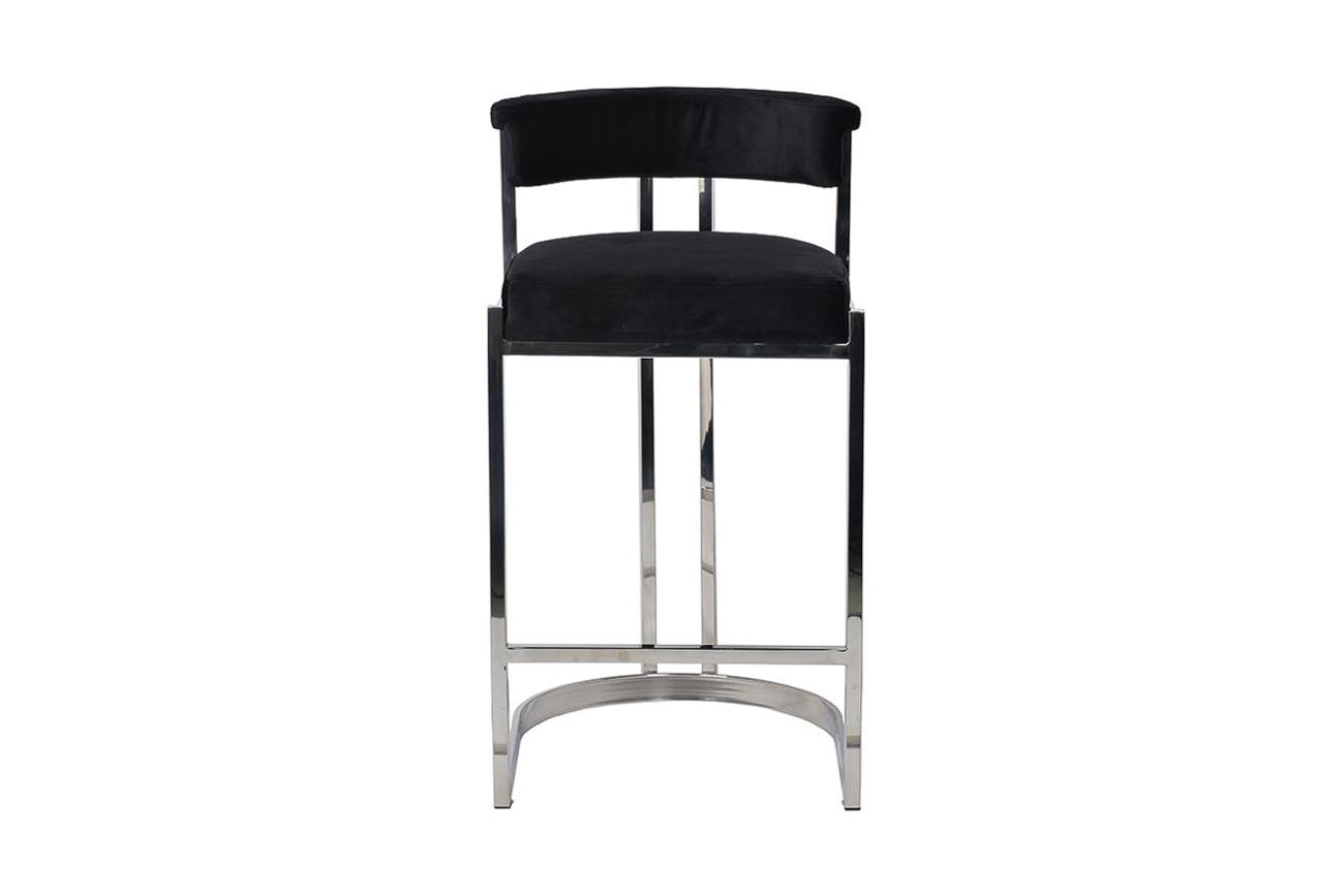 description-full - Домашнюю зону отдыха с барной стойкой идеально дополнит велюровый барный стул, который смотрится дорого и привлекательно. Такая мебель также органичной дополнит барную стойку заведения с соответствующей концепцией. Благодаря обивке велюром стул не только смотрится эстетично, но и обладает максимальным удобством, что важно для вечернего отдыха. Черный барный стул за счет классической расцветки отлично впишется во множество современных интерьеров. Цвет нержавеющей стали барного стула - хром, что оттеняет благородство велюра. Высококачественное исполнение позволит изделию долгое время сохранять свой привлекательный вид. Наполнитель пенополиуретан. Размеры сиденья: В66,5*Г51см.