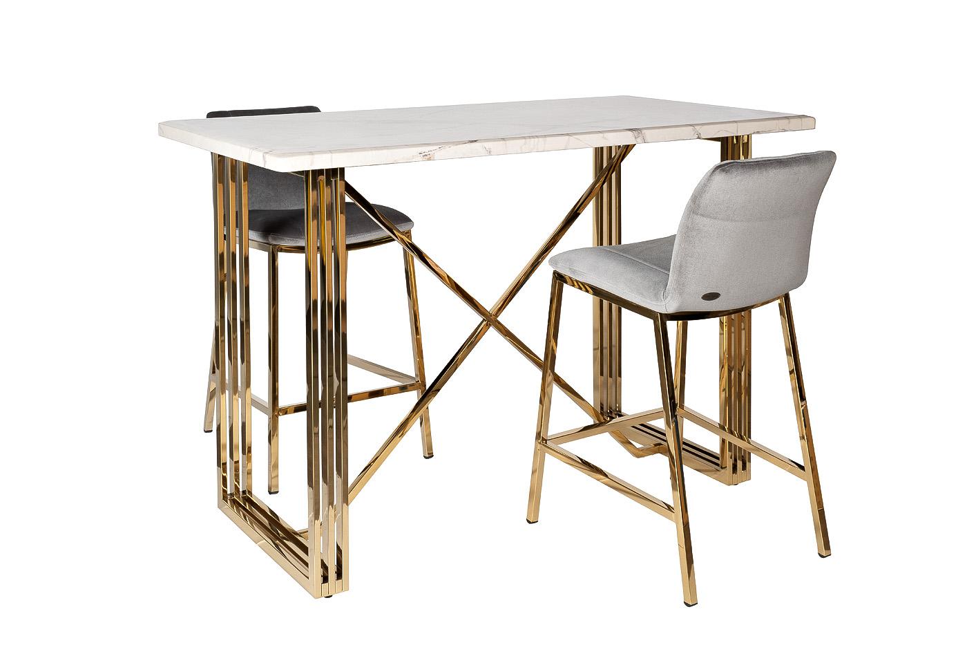 Удобный барный стул из сергого велюра на позолоченном основании из нержавеющей стали. Серый велюровый барный стул – стильный и элегантный в своем дизайне. Его сложно назвать универсальным, поскольку красота этой модели предъявляет высокие требования к общ...