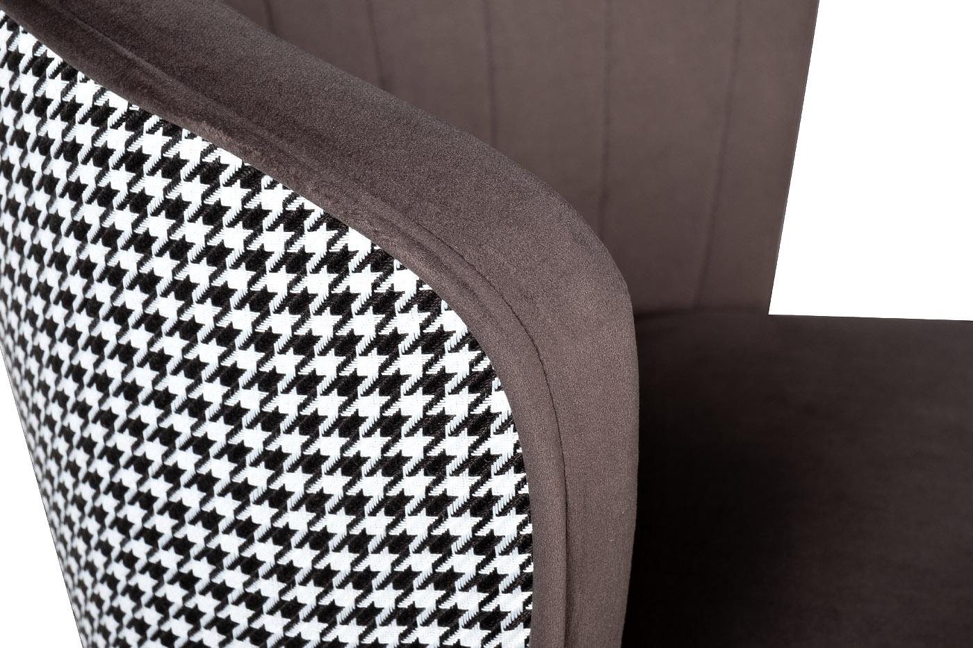 description-full - Велюровый барный стул – стильный предмет мебели в нестандартном исполнением. Такая модель однозначно понравится людям, которые ценят элегантность и стильное оформление. Барный стул со спинкой подойдёт для различного интерьера от минимализма до современного арт-деко. Тыльная сторона спинки барного стула украшена орнаментом «гусиная лапка» и вертикальным швом с застежкой-молнией, а обивочная ткань из серо-коричневого велюра создаёт особенно мягкую и приятную поверхность. Модель порадует своим оригинальным дизайнерским решением, комфортом и практичностью. Габариты сиденья: ширина 46см, глубина 44см, высота сиденья -77см. По оттенку cеро-коричневого велюра и спинки в ткани "гусиная лапка" сочетается со стулом 30А-1232 GR