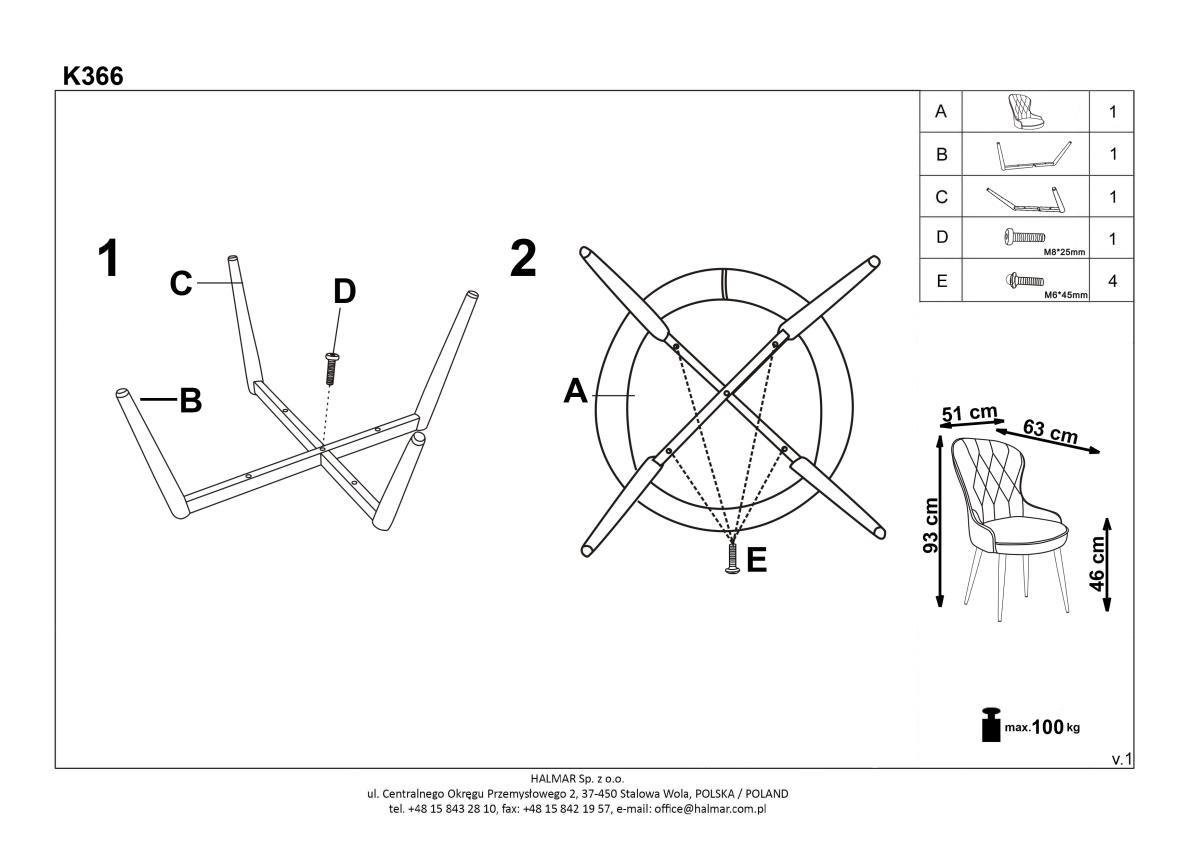 Стул Halmar Стул кухонный Halmar K366 (серый) арт. V-CH-K/366-KR-POPIEL