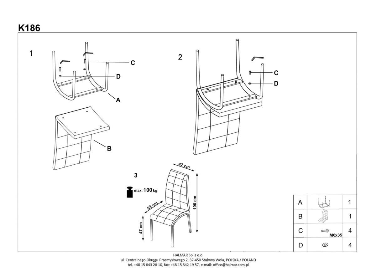 Стул Halmar Стул кухонный Halmar K186 (черный/белый) арт. V-CH-K/186-KR-CZARNY