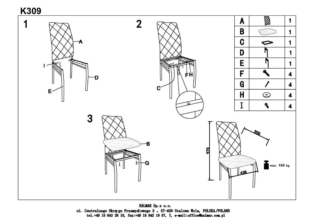 Стул Halmar Стул кухонный Halmar K309 (темно-серый/хром) арт. V-CH-K/309-KR-C.POPIEL