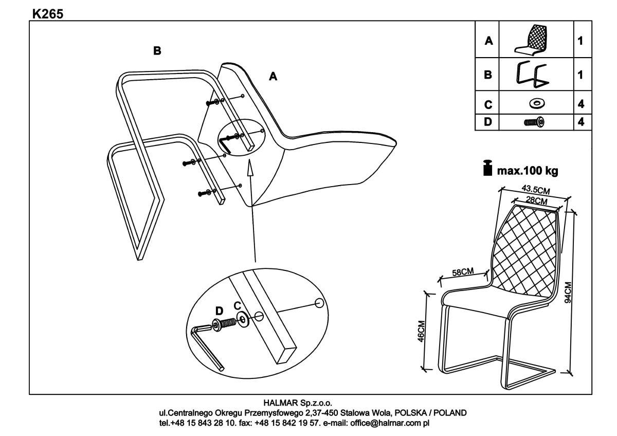 Стул Halmar Стул кухонный Halmar K265 (коричневый/дуб медовый) арт. V-CH-K/265-KR