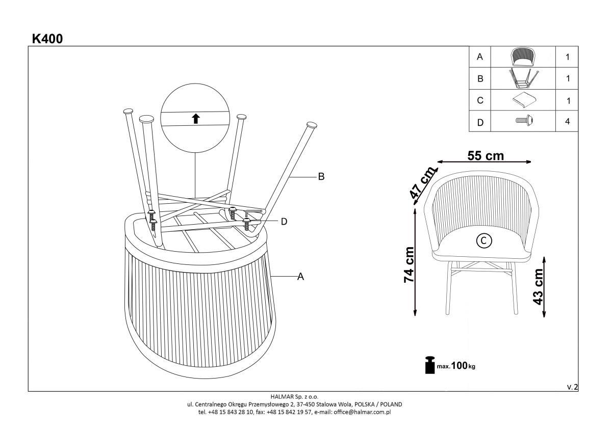 Стул Halmar Стул кухонный Halmar K400 (натуральный/серый) арт. V-CH-K/400-KR