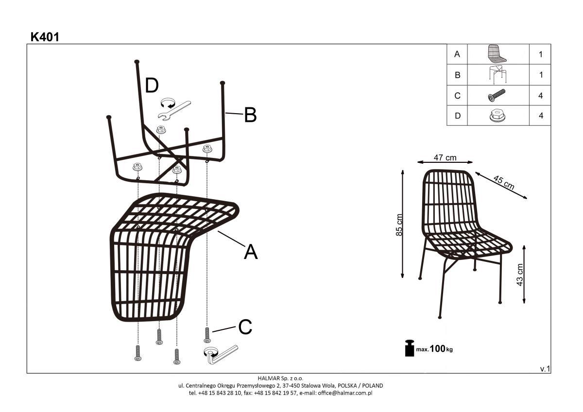 Стул Halmar Стул кухонный Halmar K401 (серый/черный) арт. V-CH-K/401-KR-CZARNY