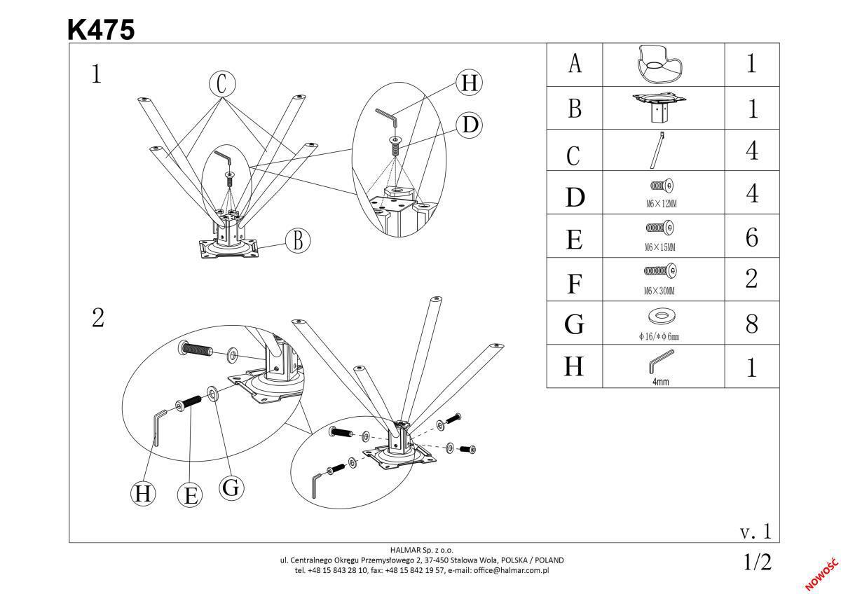 Стул Halmar Стул кухонный Halmar K475 (серый/черный) арт. V-CH-K/475-POPIEL
