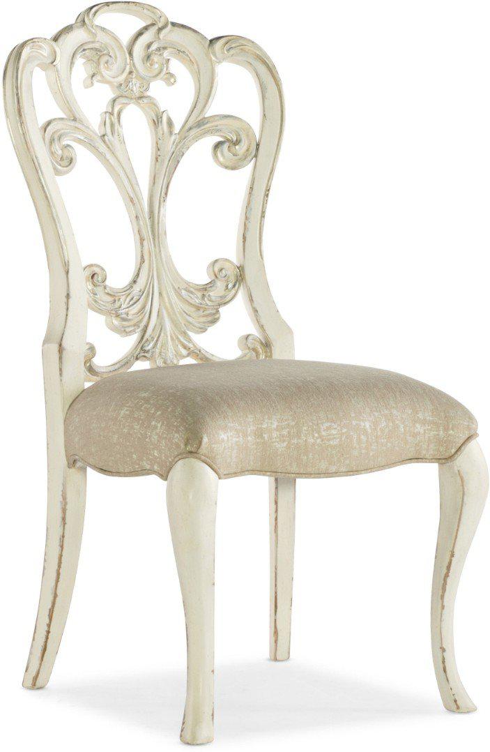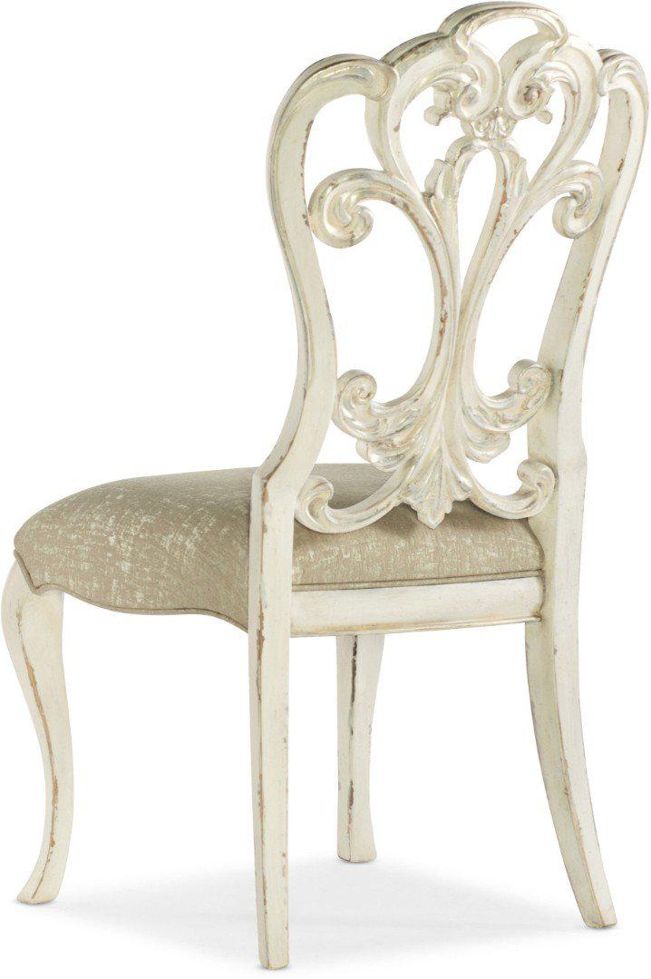 Романтичные элегантные стулья кремово-белого цвета соблазняют фигурными резными спинками и чуть изогнутыми ножками. Стулья изготовлены из каучукового дерева, а для обивки сиденья использовалась ткань высокого класса, устойчивая к загрязнениям и пятнам. Стильные изящные стулья станут главным украшением вашей столовой.