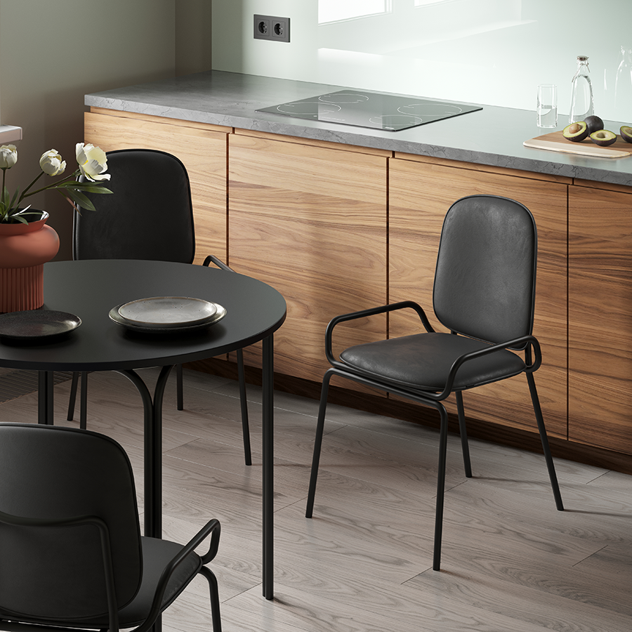 Коллекция Ror - это мебель с индивидуальным характером. Стул Double Frame имеет удобную посадку за счет высокой спинки и широкого сиденья. Отсутствие острых углов создает легкий, гармоничный силуэт. Стальной каркас с порошковым покрытием делает конструкцию прочной и надежной, а мягкий велюр с бархатистой текстурой обеспечивает тактильный комфорт. Ткань обивки обладает высокими показателями износостойкости. Используемый в качестве наполнителя пенополиуретан отличается комфортной плотностью и жесткостью. Все материалы отвечают высоким стандартам практичности, долговечности и экологической безопасности. Стул украсит собой любой современный интерьер: подойдет для оформления обеденной группы, рабочего пространства или зоны отдыха. Материалы: сталь, фанера, 100% пенополиуретан, 100% полиэстер. Размеры: 50х61х84 см. Высота сиденья: 47 см. Ширина сиденья: 40 см. Глубина сиденья: 38 см. Высота спинки: 39 см. Ширина спинки: 37 см. Максимальная нагрузка: 102 кг. Цвет: черный/черный. Загрязнения удалять с поверхностей мыльным раствором воды при помощи мягкой губки или салфетки.