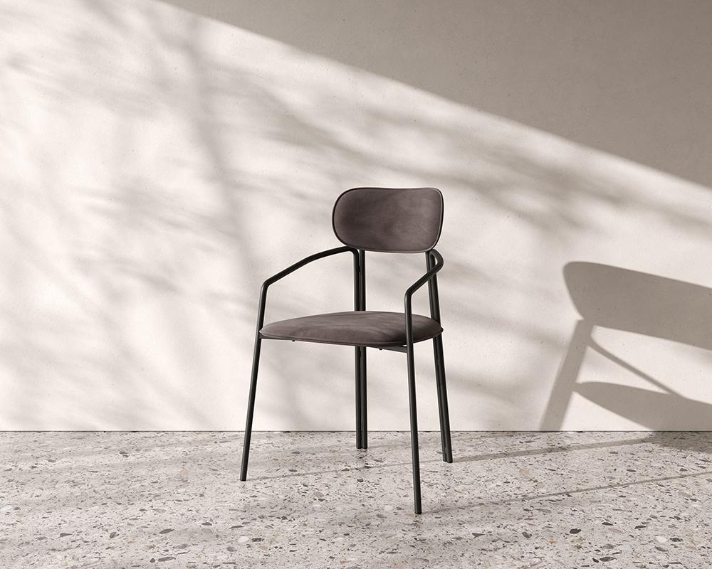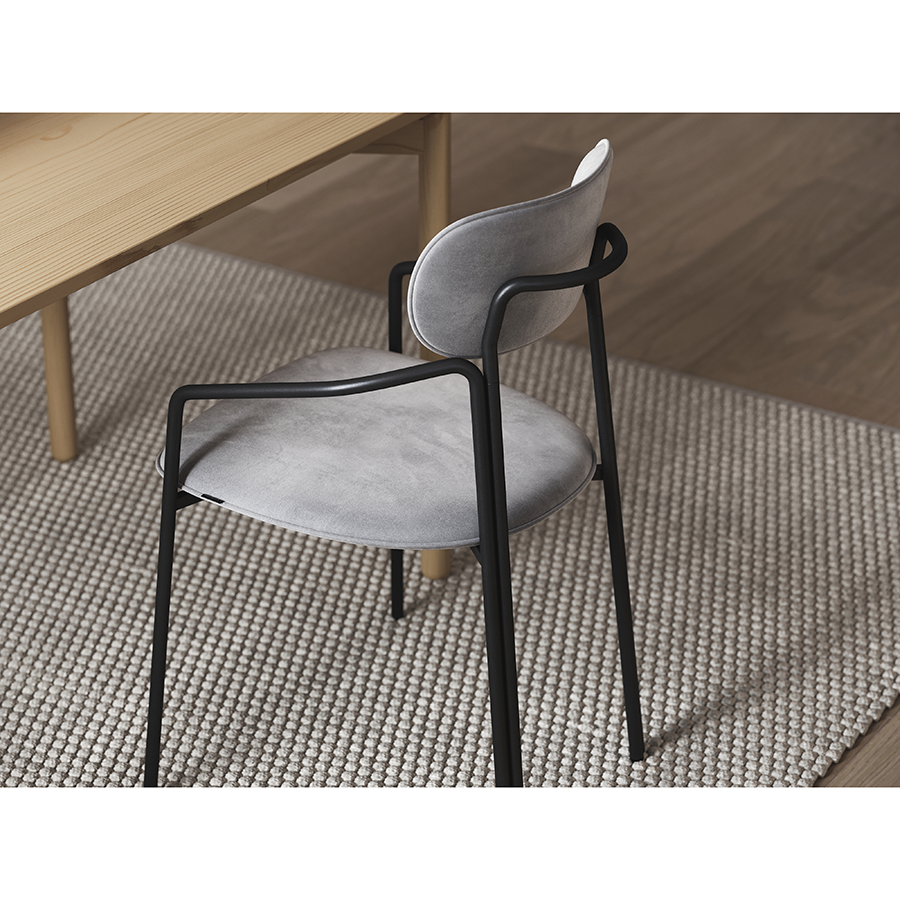 Коллекция Ror - это мебель с индивидуальным характером. Каркас стула Round состоит из трех стремящихся вверх элементов, которые образуют округлый, словно окутывающий корпус. За счет отсутствия прямых углов создается легкий, гармоничный силуэт. Стальное основание с порошковым покрытием делает конструкцию прочной и надежной, а мягкий велюр с бархатистой текстурой обеспечивает тактильный комфорт. Ткань обивки обладает высокими показателями износостойкости. Используемый пенополиуретан отличается комфортной плотностью и жесткостью. Все материалы отвечают высоким стандартам практичности, долговечности и экологической безопасности. Стул украсит собой любой современный интерьер: подойдет для оформления обеденной группы, рабочего пространства или зоны отдыха. Материалы: сталь, фанера, 100% пенополиуретан, 100% полиэстер. Размеры: 50х58х83 см. Высота сиденья: 45 см. Ширина сиденья: 44 см. Глубина сиденья: 45 см. Высота спинки: 37 см. Ширина спинки: 38 см. Максимальная нагрузка: 102 кг. Цвет: черный/серый. Загрязнения удалять с поверхностей мыльным раствором воды при помощи мягкой губки или салфетки.