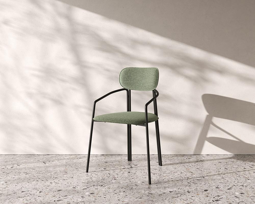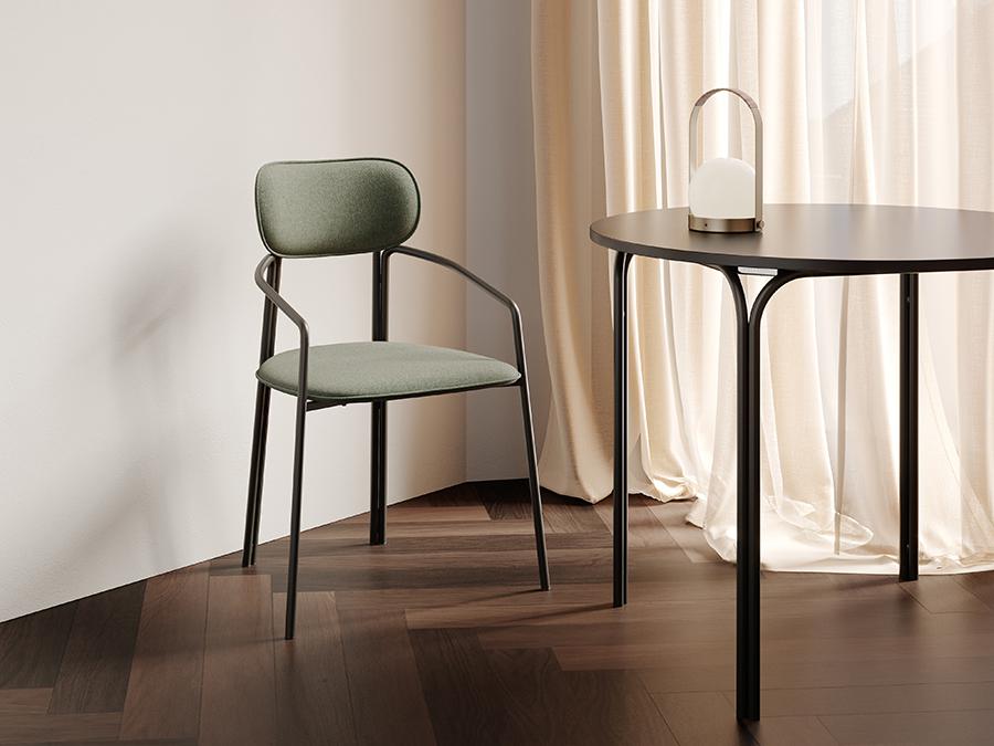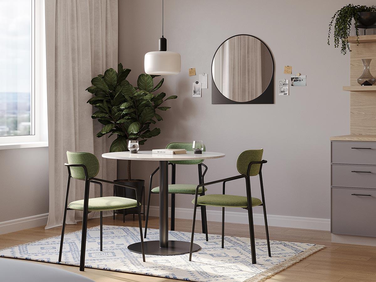 Коллекция Ror - это мебель с индивидуальным характером. Каркас стула Round состоит из трех стремящихся вверх элементов, которые образуют округлый, словно окутывающий корпус. За счет отсутствия прямых углов создается легкий, гармоничный силуэт. Стальное основание с порошковым покрытием делает конструкцию прочной и надежной, а меланжевая ткань обивки обладает высокими показателями износостойкости. Используемый пенополиуретан отличается комфортной плотностью и жесткостью. Все материалы отвечают высоким стандартам практичности, долговечности и экологической безопасности. Стул украсит собой любой современный интерьер: подойдет для оформления обеденной группы, рабочего пространства или зоны отдыха. Материалы: сталь, фанера, 100% пенополиуретан, 100% полиэстер. Размеры: 50х58х83 см. Высота сиденья: 45 см. Ширина сиденья: 44 см. Глубина сиденья: 45 см. Высота спинки: 37 см. Ширина спинки: 38 см. Максимальная нагрузка: 102 кг. Цвет: черный/зеленый. Загрязнения удалять с поверхностей мыльным раствором воды при помощи мягкой губки или салфетки.