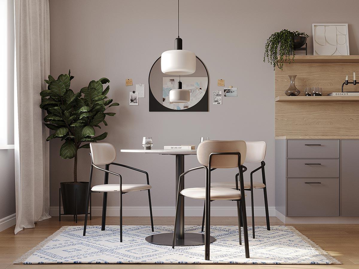 Коллекция Ror - это мебель с индивидуальным характером. Каркас стула Round состоит из трех стремящихся вверх элементов, которые образуют округлый, словно окутывающий корпус. За счет отсутствия прямых углов создается легкий, гармоничный силуэт. Стальное основание с порошковым покрытием делает конструкцию прочной и надежной, а мягкий велюр с бархатистой текстурой обеспечивает тактильный комфорт. Ткань обивки обладает высокими показателями износостойкости. Используемый пенополиуретан отличается комфортной плотностью и жесткостью. Все материалы отвечают высоким стандартам практичности, долговечности и экологической безопасности. Стул украсит собой любой современный интерьер: подойдет для оформления обеденной группы, рабочего пространства или зоны отдыха. Материалы: сталь, фанера, 100% пенополиуретан, 100% полиэстер. Размеры: 50х58х83 см. Высота сиденья: 45 см. Ширина сиденья: 44 см. Глубина сиденья: 45 см. Высота спинки: 37 см. Ширина спинки: 38 см. Максимальная нагрузка: 102 кг. Цвет: черный/бежевый. Загрязнения удалять с поверхностей мыльным раствором воды при помощи мягкой губки или салфетки.