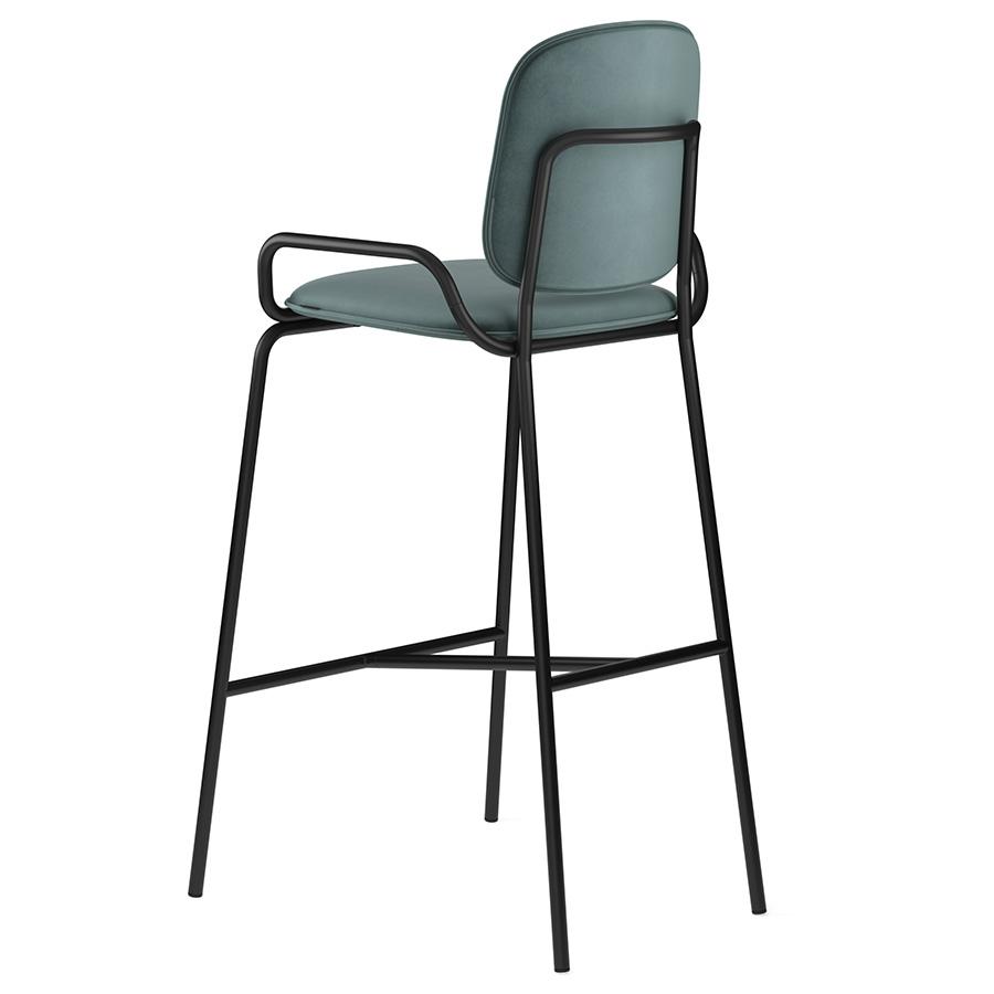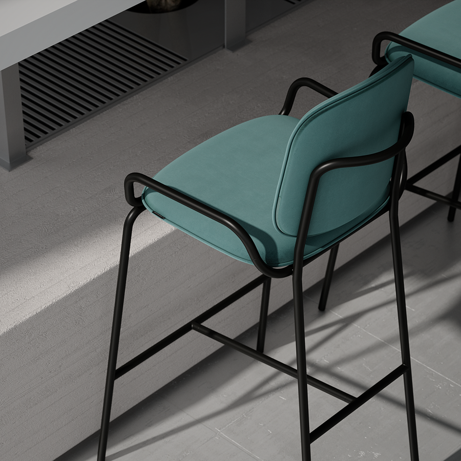 Коллекция Ror – это мебель с индивидуальным характером. Отправной точкой создания линейки стало динамичное движение, воплощенное в логотипе Олимпиады 80, где беговые дорожки образуют силуэт Спасской башни. Стул барный Double Frame имеет удобную посадку за счет высокой спинки и широкого основания. Ножки плавно переходят в подлокотники и в нижней части соединяются металлической рамой, которая служит подставкой для ног. Такое дизайнерское решение создает дополнительный комфорт во время сидения. Стальной каркас с порошковым покрытием делает конструкцию прочной и надежной, а мягкий велюр с бархатистой текстурой обеспечивает приятные тактильные ощущения. Используемый в качестве наполнителя пенополиуретан отличается оптимальной плотностью и жесткостью. Все материалы отвечают высоким стандартам практичности, долговечности и экологической безопасности. Стул украсит интерьер кафе и ресторана, а также прекрасно подойдет для оформления барной стойки и кухонного острова в доме или квартире. Материалы: сталь, фанера, 100% пенополиуретан, 100% полиэстер. Размеры: 54х56,9х108,4 см. Максимальная нагрузка: 136 кг. Цвет: черный/зеленый. Загрязнения удалять с поверхностей мыльным раствором воды при помощи мягкой губки или салфетки.