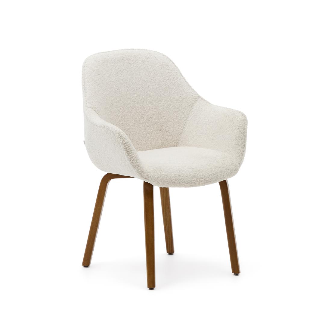 Стул La Forma (ех Julia Grup) Aleli Стул из белой синели и ножками из ясеня с отделкой под орех арт. 179266