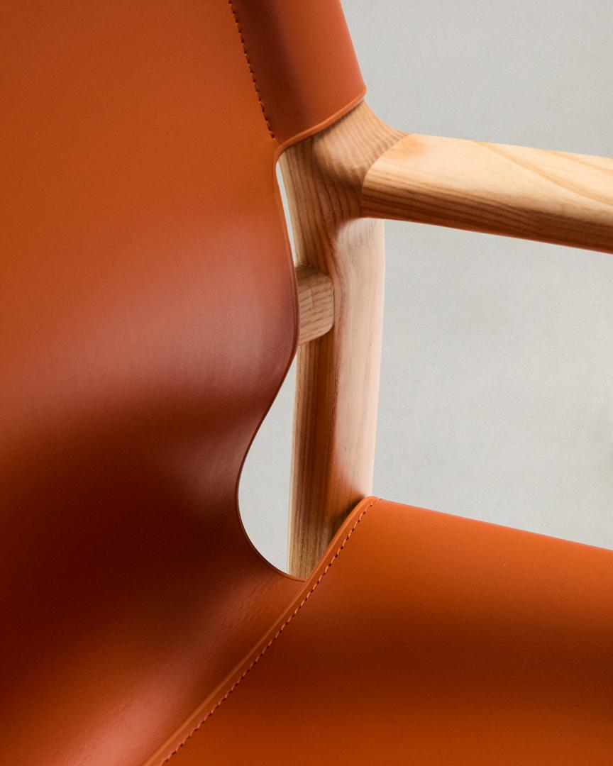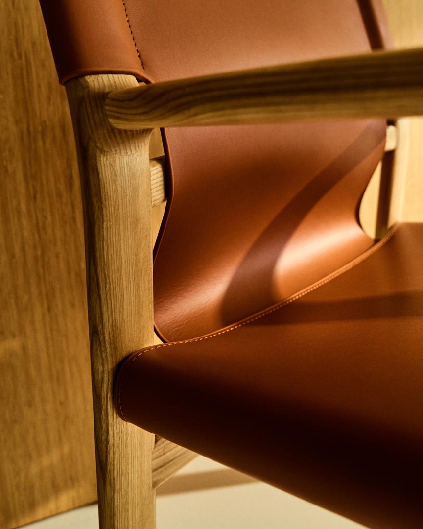 Стул La Forma (ех Julia Grup) Стул Jan из переработанной кожи светло-коричневого цвета и ясеня в натуральном цвете арт. 301326