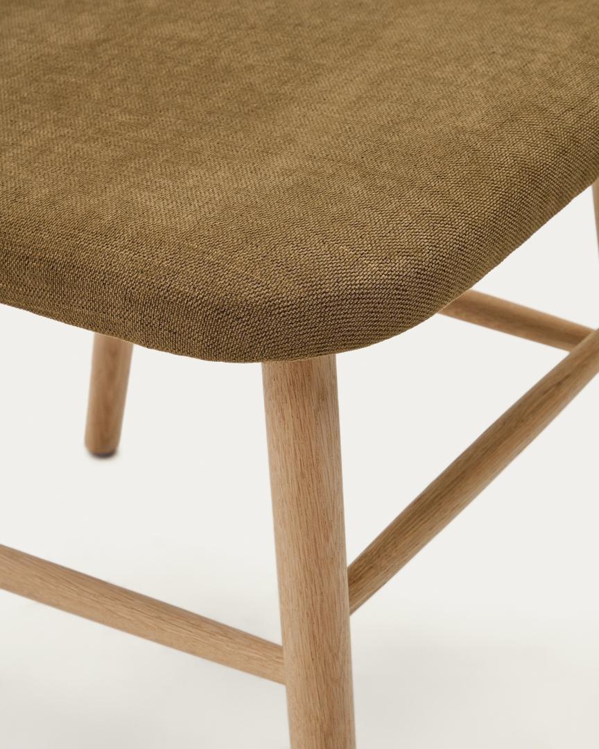 Стул Helda представляет собой изделие ручной работы, изготовленное из массива дуба, спинка и сиденье которого обтянуты водоотталкивающей синелью, идеально подходящей для создания модной столовой с естественным видом благодаря полностью обновленному классическому дизайну.