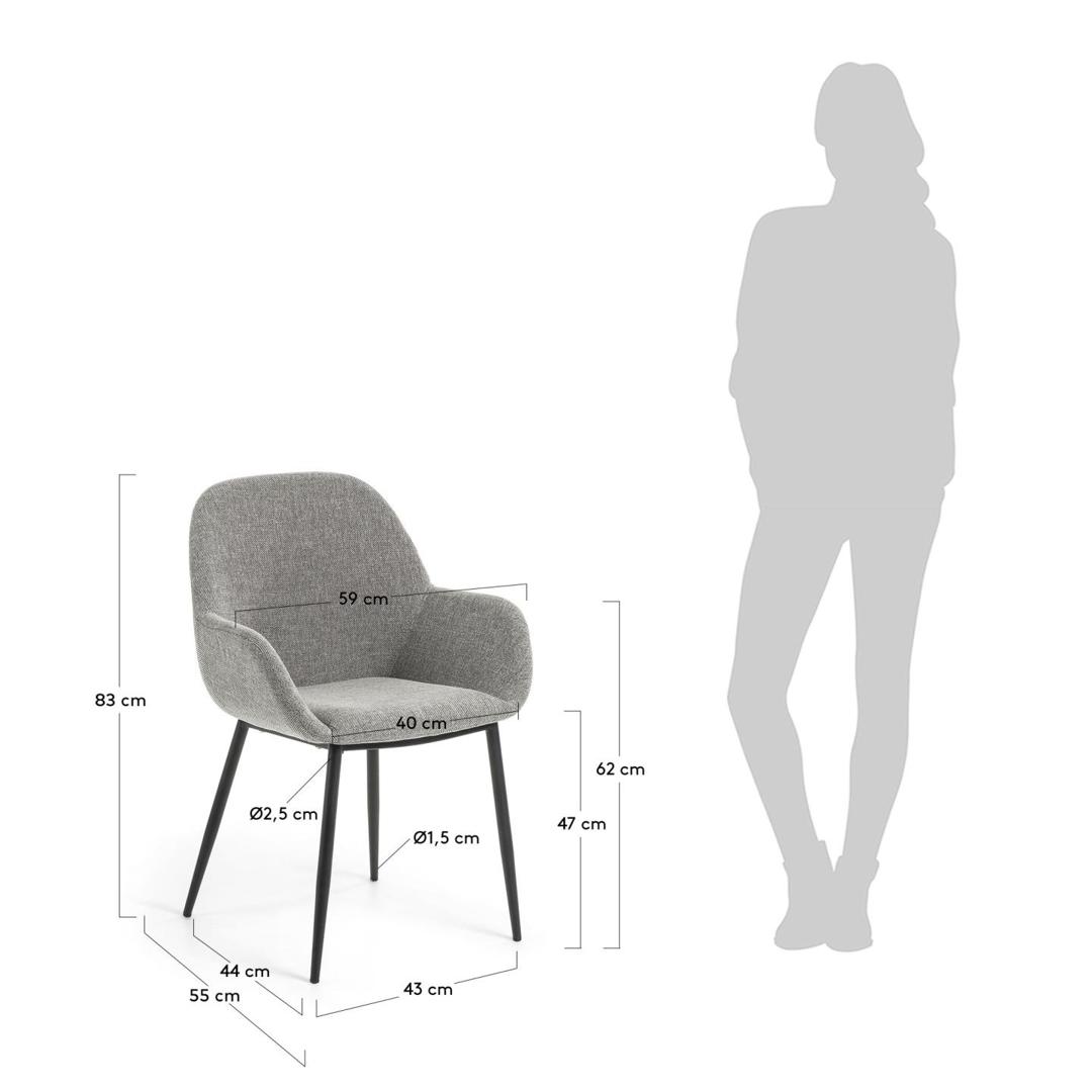 Стул Konna из одноименной коллекции от фабрики La Forma (ex Julia Grup). Стул завораживает своей простотой и изяществом. Здесь взгляд останавливает не буйство красок и элементов декора, а продуманная функциональность и универсальный дизайн. Любители урбанистического стиля без излишеств, этот стул для вас. Чтобы поставить эту модель в квартиру, не навредив интерьеру, придумывать ничего не нужно. Стул прекрасно впишется в гостиную, выполненную в современном европейском стиле, где главное правило — стиль и функциональность. Универсальная цветовая гамма — это еще один плюс к тому, что изделие лаконично встанет в помещении с любым цветом интерьера. Конструкция проста до предела — это цельное сиденье, состоящее из спинки, бортиков и подушки, и металлический каркас из четырех ножек, обеспечивающий прочность и устойчивость. Ножки окрашены порошковой краской в черный цвет. Несмотря на «тяжесть» материала изготовления, их форма изящная и абсолютно не придает изделию громоздкий вид. Материал обивки сиденья — прочный текстиль.Эта ткань обладает высокой степенью износостойкости и приятная на ощупь (при чистке использование отбеливателей и абразивных веществ запрещено). Размеры — 59 см×83 см×52 см (ширина, высота, глубина). Вес — 6,6 кг. В коллекции Konna эта модель представлена в четырех цветах: темно-сером, горчичном, голубом и сером.