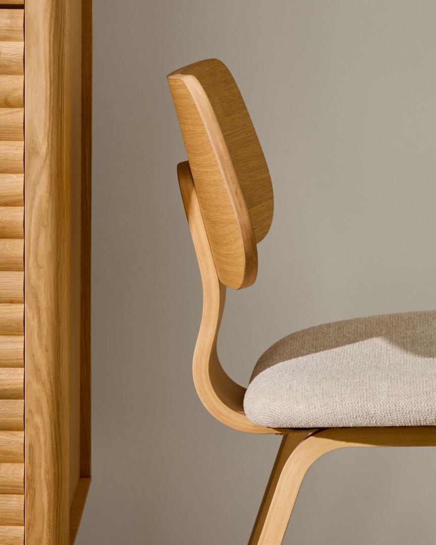 Стул La Forma (ех Julia Grup) Стул Gena из бежевого шенилла с каркасом из шпона дуба и каучукового дерева арт. 251212