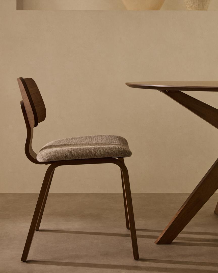 Стул La Forma (ех Julia Grup) Стул Gena из бежевого шенилла с каркасом из шпона ореха и каучукового дерева арт. 251214