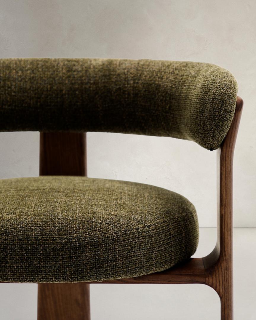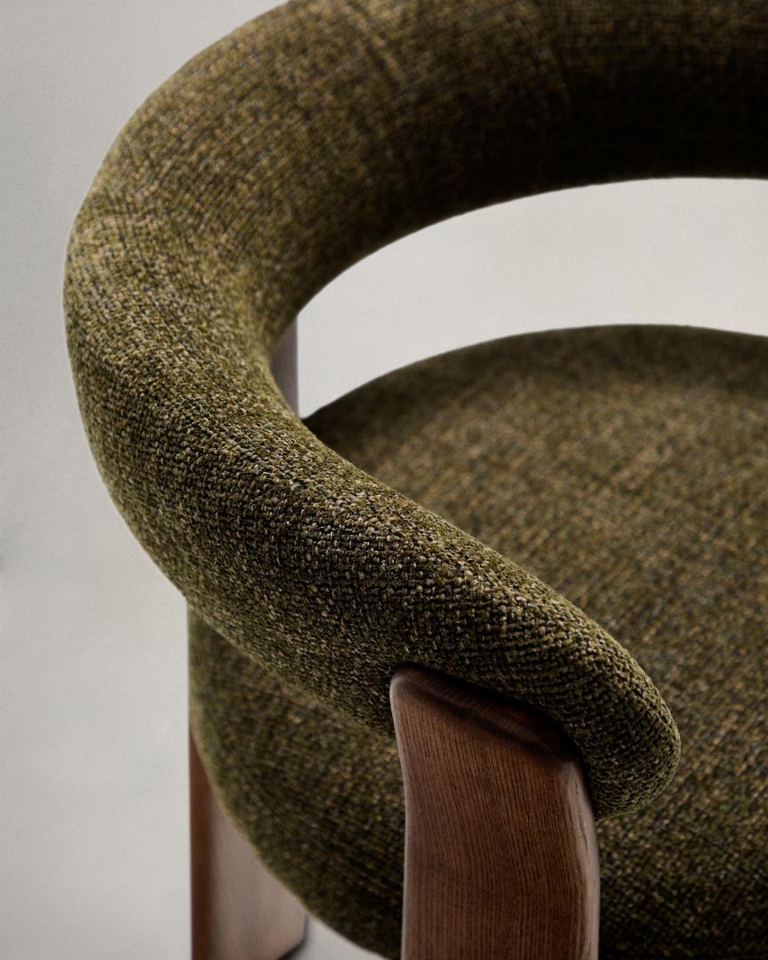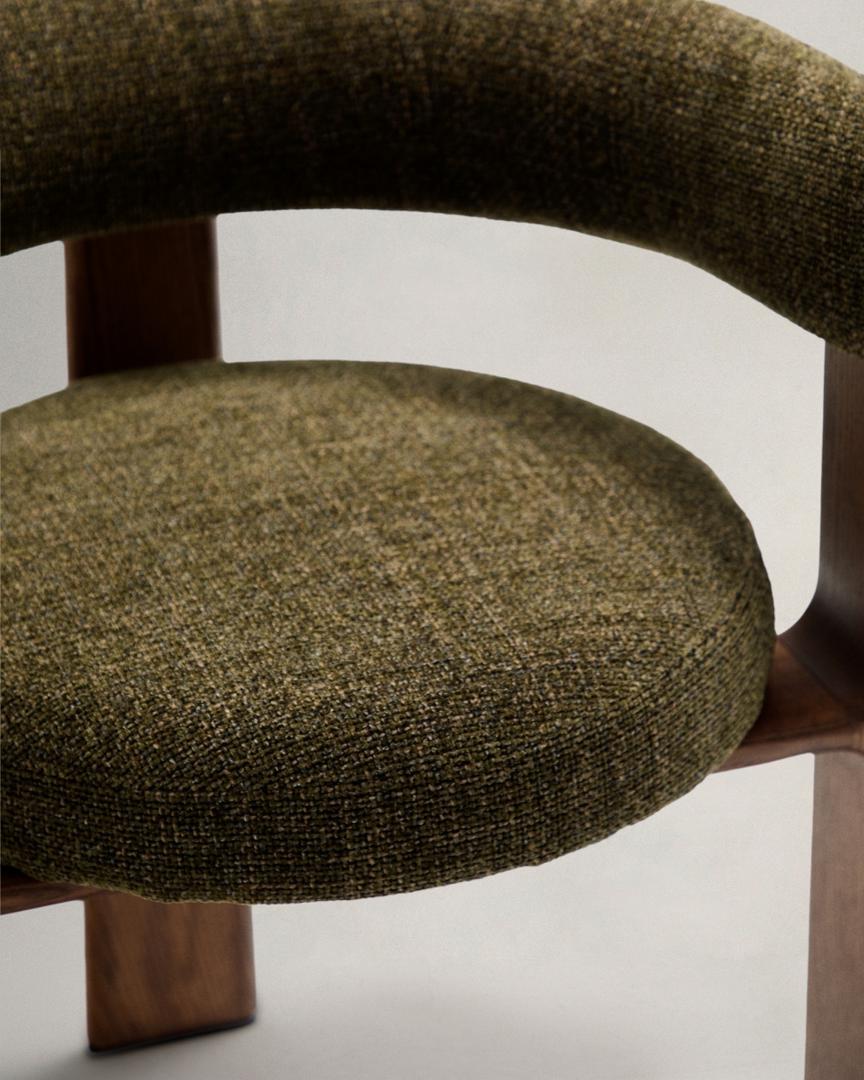 Стул La Forma (ех Julia Grup) Granite Стул на 3 ножках из зеленого шенилла и массива ясеня в отделке орех арт. 207765