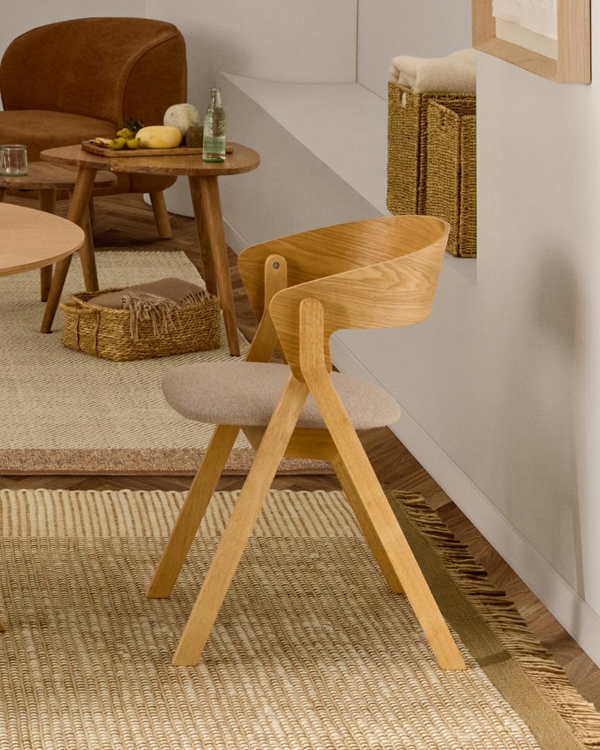Стул La Forma (ех Julia Grup) Стул Godia из дерева в натуральном цвете и бежевого шенилла арт. 250733
