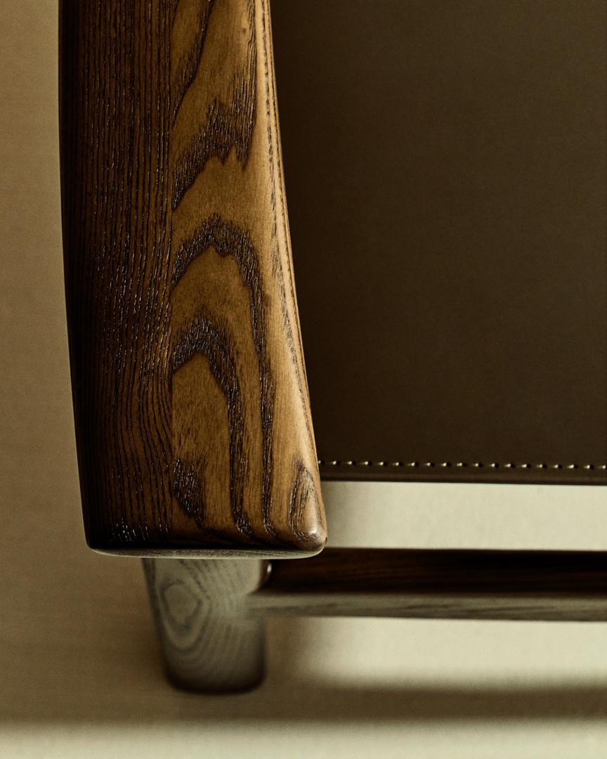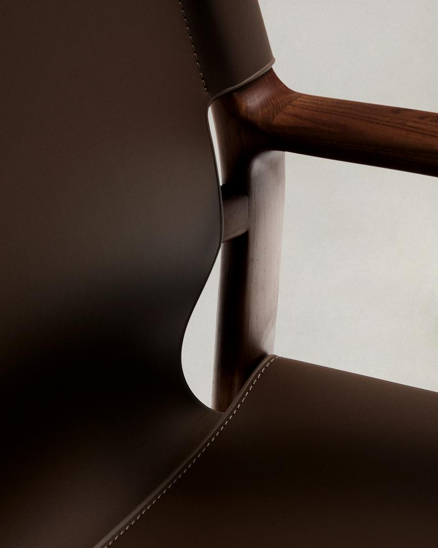 Стул La Forma (ех Julia Grup) Стул Jan из переработанной кожи темно-коричневого цвета и ясеня в ореховом цвете арт. 301328