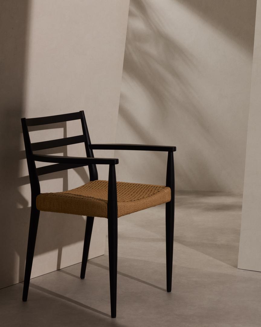 Стул La Forma (ех Julia Grup) Analy Стул из массива дуба с черной отделкой и сиденьем из веревки арт. 189961