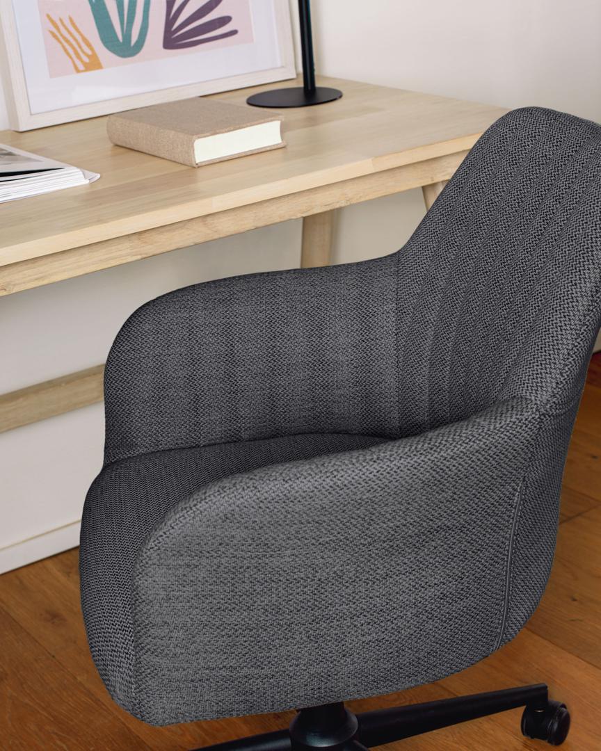 Офисный стул Madina – дизайн, который идеален для домашнего кабинета. Офисный стул Madina поможет вам обустроить рабочее пространство дома с уютом и комфортом. Форма сиденья в виде кресла обеспечит домашнюю обстановку, а включенные в конструкцию опции создадут удобство. В таком кресле рабочие проекты завершатся намного быстрее, ведь вы будете ощущать комфорт в полной мере! Стул состоит из цельного сиденья и стойки с пятью ножками. Стойка изготовлена из металла. Сверху она имеет хромированное покрытие, нижняя часть окрашена в черный цвет матовой порошковой краской. Стойка оснащена подъемным механизмом (газлифтом), который меняет высоту кресла в пределах 7 см. Ножки на колесах. Из диаметр – 5 см. Каркас сиденья сделан из прочной фанеры. Сверху он смягчен пеной плотностью 35 кг/м3, которая обеспечивает среднюю жесткость. Обивка тканевая, светло-серого или графитового цвета (зависит от выбранной модели). Состав ткани: 100% полипропилен плотностью 260 г/м2 Стойкость ткани к истиранию (циклы Мартиндейла) – более 22000. Размеры: ширина сиденья – 45 см, глубина сиденья – 44 см, высота – от 81 до 88 см. Вес изделия – 9,1 кг Максимальная весовая нагрузка – не более 130 кг. Потребуется сборка, инструкция включена в комплектацию.