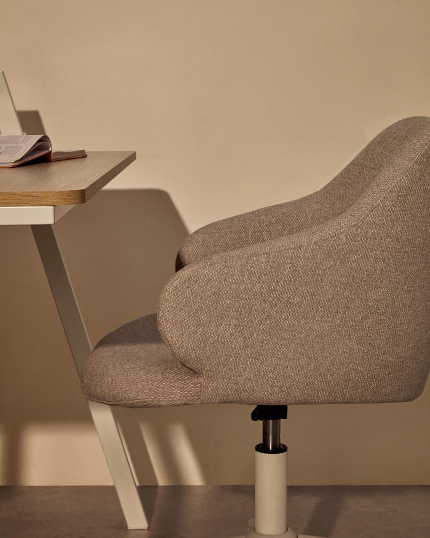 Офисный стул Einara от фабрики La Forma (ex Julia Grup) – для работы дома в полном комфорте. Офисный стул Einara непременно обрадует вас своим удобством. Поворотное сиденье, колеса и регулируемая высота – характеристики, которые отвечают за комфорт. Укороченная спинка добавит стиля вашему кабинету. А благодаря особой обивке с защитой против пятен, сиденье будет чистым, даже при интенсивной эксплуатации. Пользуйтесь лучшими изделиями для работы! Конструкция кресла сборная. Ножка изготовлена из металла, где верхняя часть имеет хромированное покрытие, а разветвление окрашено в черный матовый цвет порошковой краской. Ножка оснащена газлифтом, который меняет высоту кресла в пределах 10 см. Обивка выполнена из прочного текстиля. Ее цвет зависит от выбранной модели – графитовый, светло-серый, розово-бежевый. Состав ткани – 100% полиэстер. Ее характеристики: плотность – 310 г/м2, стойкость к истиранию (циклы Мартиндейла) – более 35000. Эти показатели обеспечивают стойкость обивки к износу, механическим повреждениям. Наполнитель у стула синтетический, с плотностью 35 кг/м3. Максимально допустимый вес нагрузки – 130 кг. Размеры: ширина по спинке – 56 см, ширина сиденья – 55 см, глубина сиденья – 48 см, высота – от 77 до 87 см. Вес изделия – 9,7 кг Потребуется сборка.