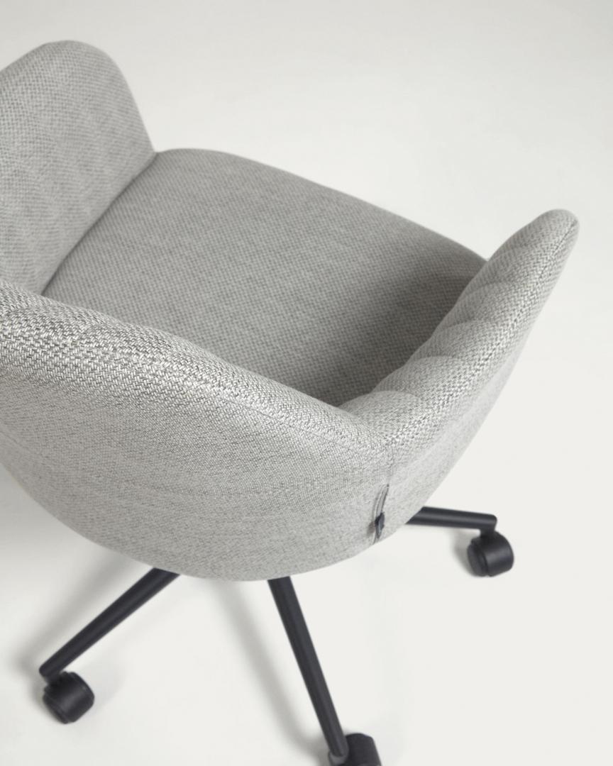 Офисный стул Madina – дизайн, который идеален для домашнего кабинета. Офисный стул Madina поможет вам обустроить рабочее пространство дома с уютом и комфортом. Форма сиденья в виде кресла обеспечит домашнюю обстановку, а включенные в конструкцию опции создадут удобство. В таком кресле рабочие проекты завершатся намного быстрее, ведь вы будете ощущать комфорт в полной мере! Стул состоит из цельного сиденья и стойки с пятью ножками. Стойка изготовлена из металла. Сверху она имеет хромированное покрытие, нижняя часть окрашена в черный цвет матовой порошковой краской. Стойка оснащена подъемным механизмом (газлифтом), который меняет высоту кресла в пределах 7 см. Ножки на колесах. Из диаметр – 5 см. Каркас сиденья сделан из прочной фанеры. Сверху он смягчен пеной плотностью 35 кг/м3, которая обеспечивает среднюю жесткость. Обивка тканевая, светло-серого или графитового цвета (зависит от выбранной модели). Состав ткани: 100% полипропилен плотностью 260 г/м2 Стойкость ткани к истиранию (циклы Мартиндейла) – более 22000. Размеры: ширина сиденья – 45 см, глубина сиденья – 44 см, высота – от 81 до 88 см. Вес изделия – 9,1 кг Максимальная весовая нагрузка – не более 130 кг. Потребуется сборка, инструкция включена в комплектацию.