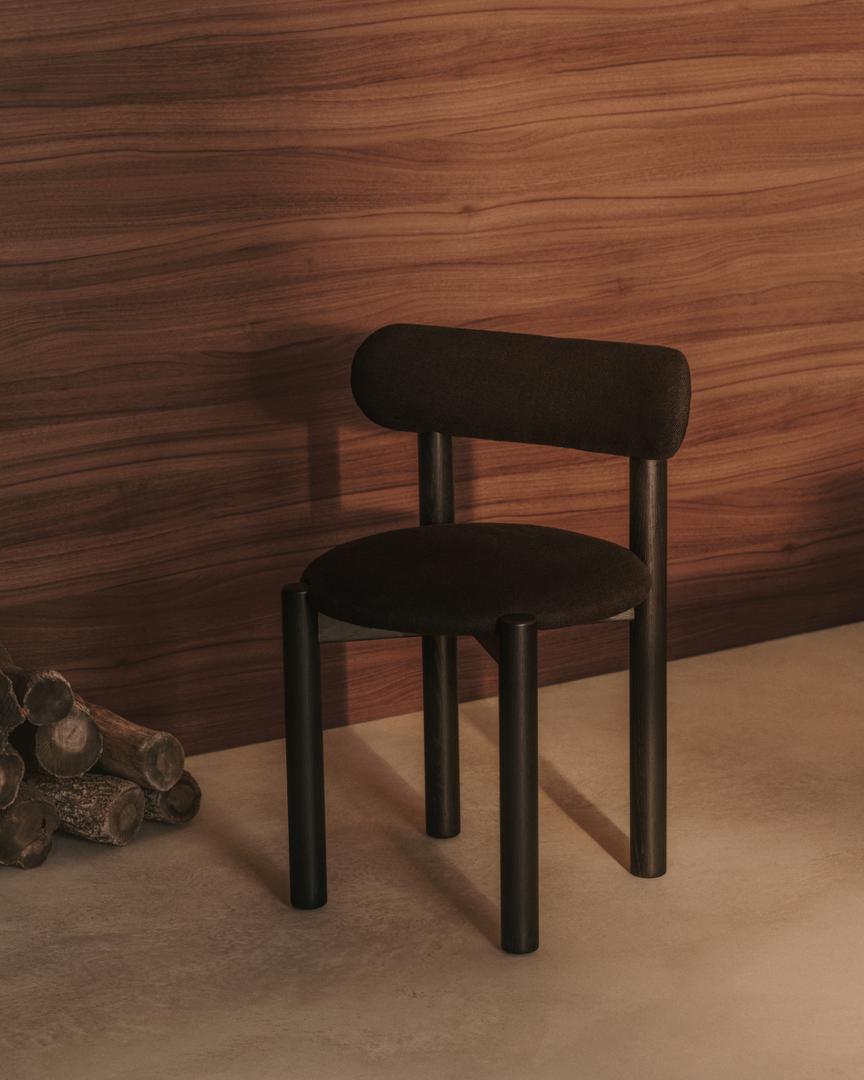 Стул La Forma (ех Julia Grup) Стул Nebai из черной синели с каркасом из массива дуба и черной отделкой FSC MIX Credit арт. 194036