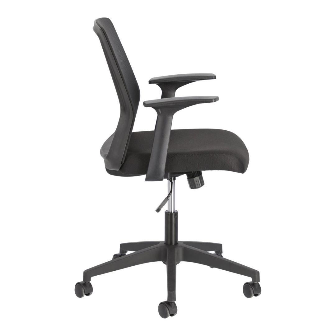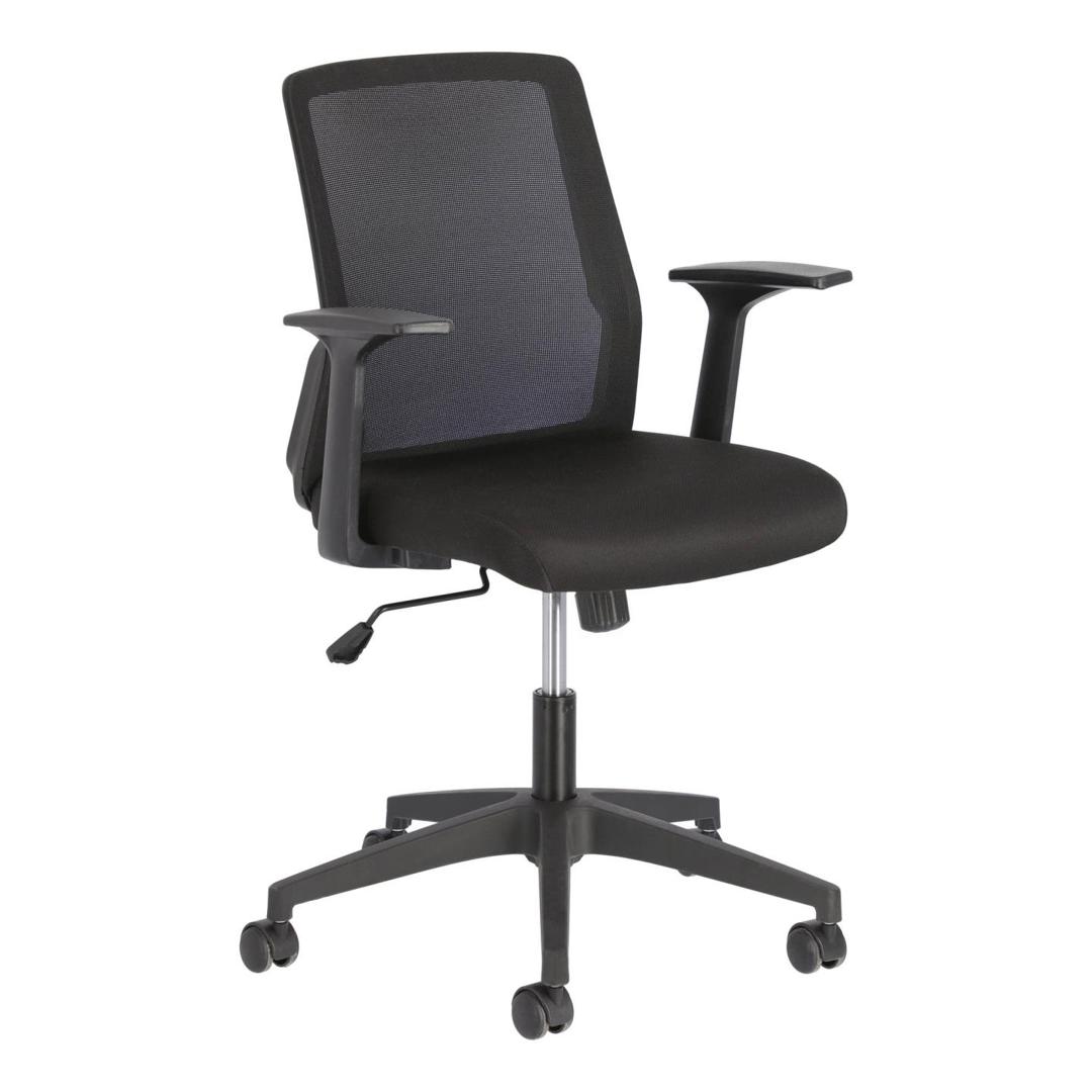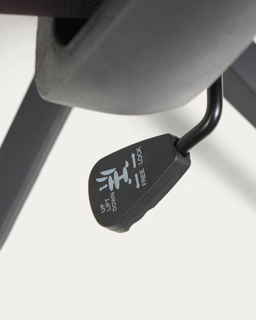 Офисное кресло Nasia от фабрики La Forma (ex Julia Grup) – удобство и современный дизайн для домашнего кабинета. Офисное кресло Nasia – замечательная модель для организации рабочего процесса дома. В нем эргономика продумана до мелочей, а современный дизайн подойдет под любой городской интерьер. С регулировкой высоты, анатомической спинкой и колесами вы наверняка будете чувствовать себя комфортно при любых занятиях. А защита от пятен на обивке обеспечит легкий уход. С креслом Nasia вы будете получать удовольствие от работы! Кресло имеет сборную конструкцию. Оно состоит из ножки и сиденья. Ножка изготовлена из металла, где верхняя часть имеет хромированное покрытие, а разветвление окрашено в черный матовый цвет порошковой краской. Ножка оснащена газлифтом, который меняет высоту кресла в пределах 10 см. Ножки оснащены колесиками, благодаря которым кресло поворачивается на 360 градусов. Они не царапают пол, поэтому подходят даже для паркета. Диаметр – 5 см. Нижняя часть сиденья сделана из прочной фанеры, которая обита пеной плотностью 35 кг/м3 (средняя жесткость). Обивка сделана из плотного текстиля и сетчатой ткани (на спинке) черного цвета. Состав материала – 100% полиэстер. Окантовка спинки и подлокотники сделаны из полипропилена черного цвета. Максимальная весовая нагрузка на кресло – 130 кг. Размеры: ширина сиденья – 47 см, высота – от 88 до 98 см, глубина сиденья – 46 см. Вес изделия – 9,5 кг. Потребуется сборка. Для чистки сиденья использовать салфетку, смоченную в мыльной воде.