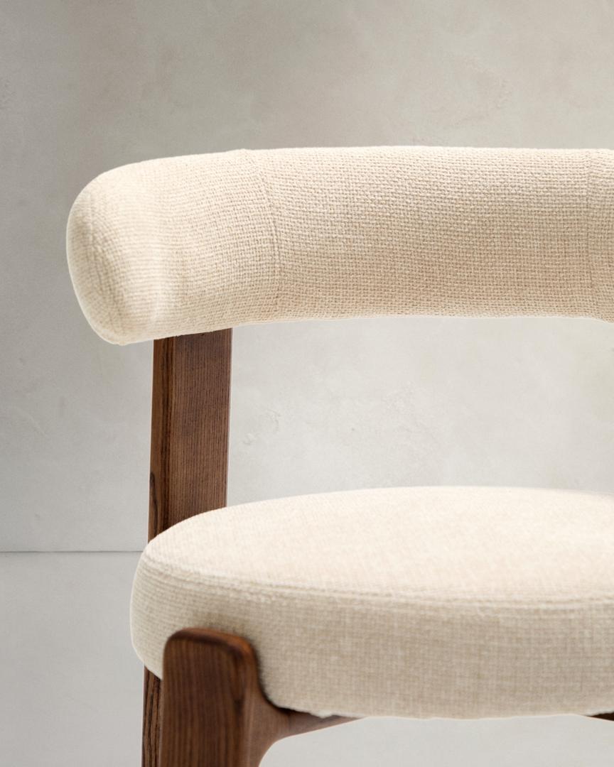 Стул La Forma (ех Julia Grup) Granite Стул на 4 ножках из бежевого шенилла и массива ясеня в отделке орех арт. 207769
