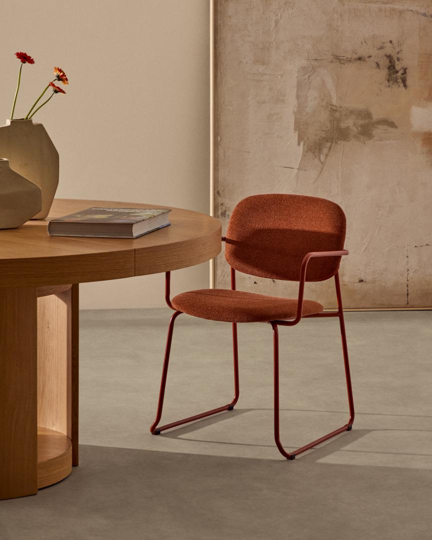 Стул La Forma (ех Julia Grup) Стул Meli с подлокотниками из терракотовой шенилли с терракотовыми металлическими ножками арт. 254221